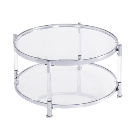 Contemporary Acrylic, Coffee Table, Round Tempered Glass Coffee Table - Chrome / Silver