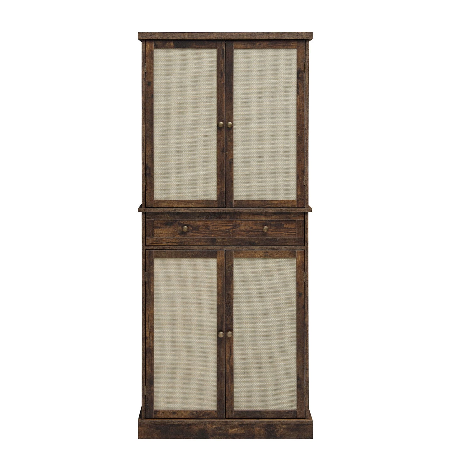 4 Door Cabinet With 1 Drawer, With 4 Adjustable Inner Shelves, Storage Cabinet - Walnut