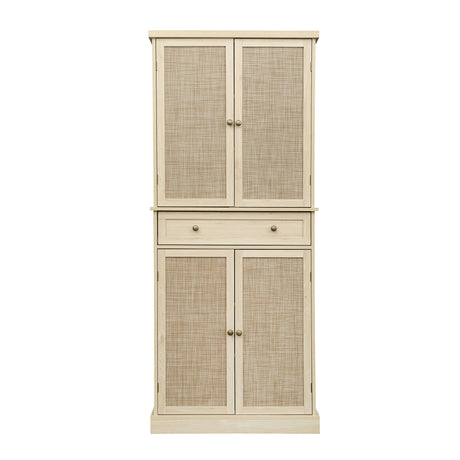 4 Door Storage Cabinet With 1 Drawer And 4 Adjustable Inner Shelves - Natural