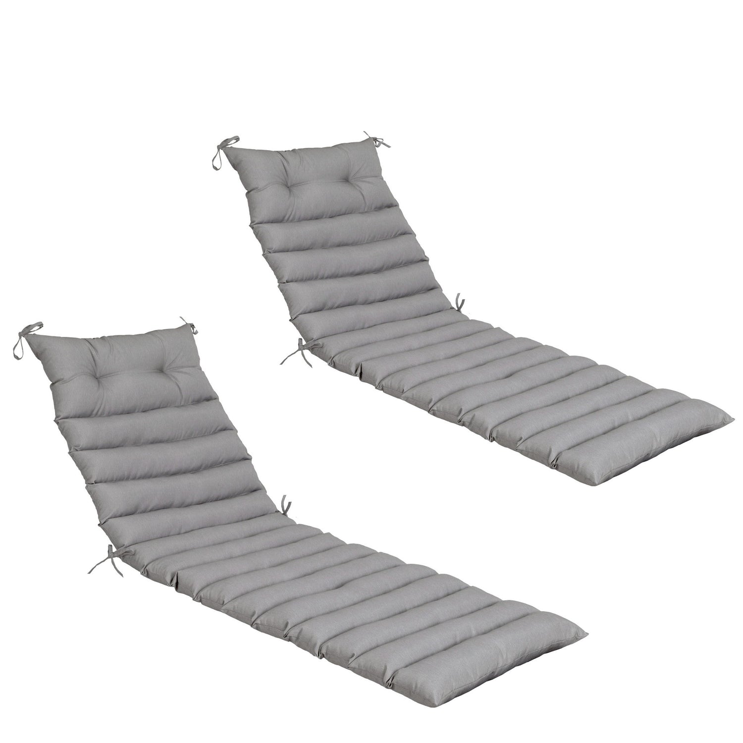 2 Piece Outdoor Chaise Lounge Chair Cushion Set, Polyester Replacement Seat Pads - Gray