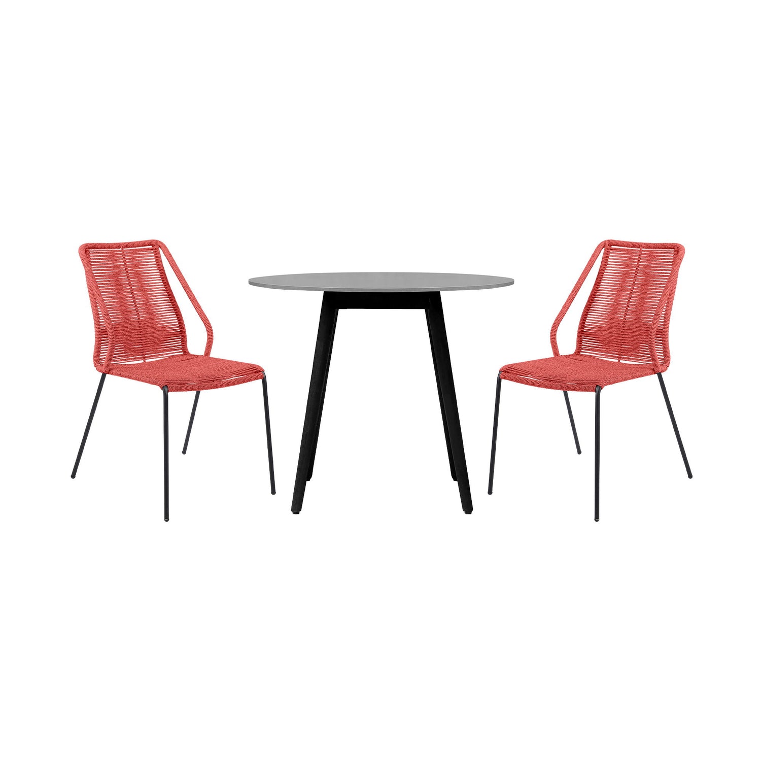 Kylie And Clip - 3 Piece Outdoor Patio Dining Set - Black Eucalyptus / Brick Red