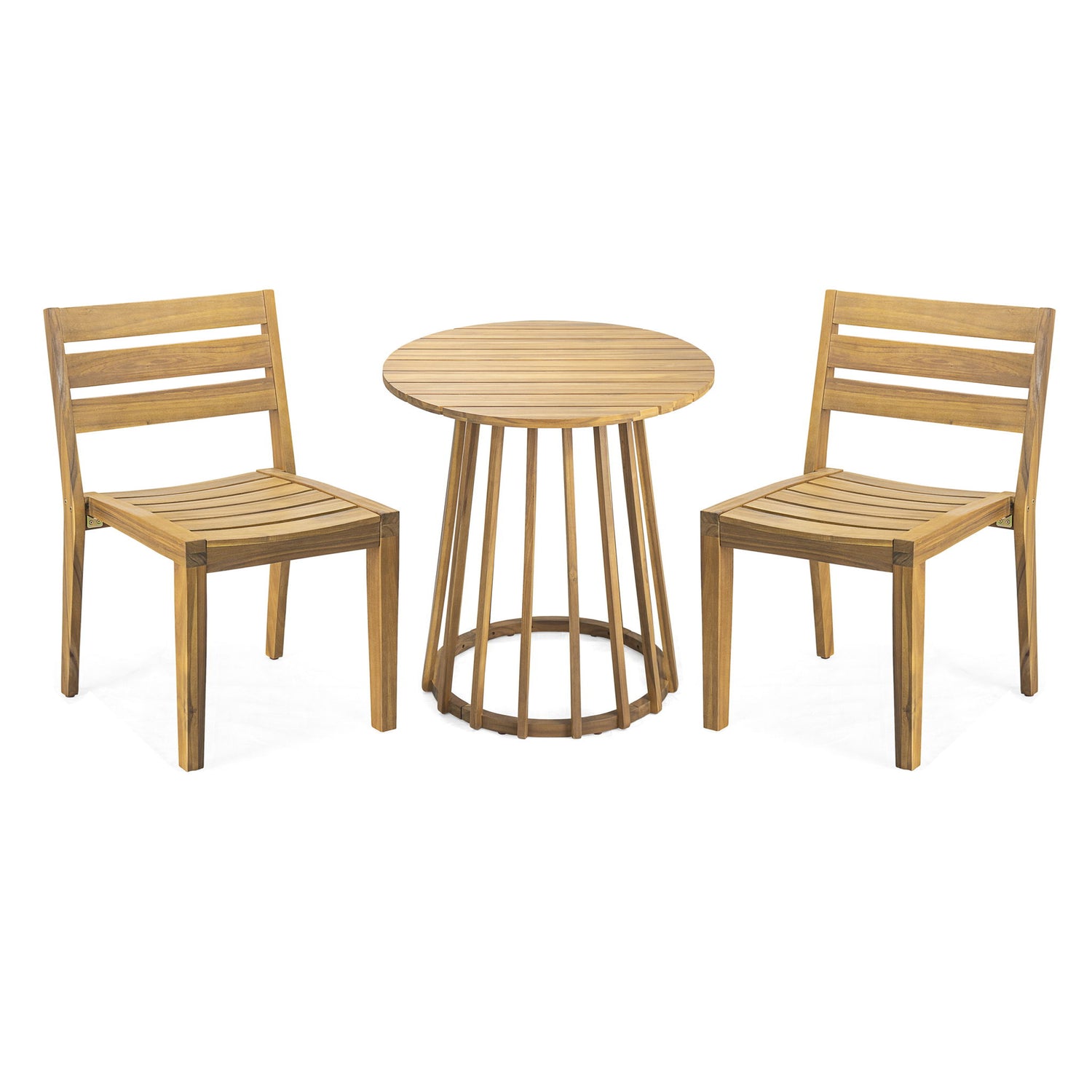 Outdoor 3 Pieces Dining Set, Round Bistro Set - Teak