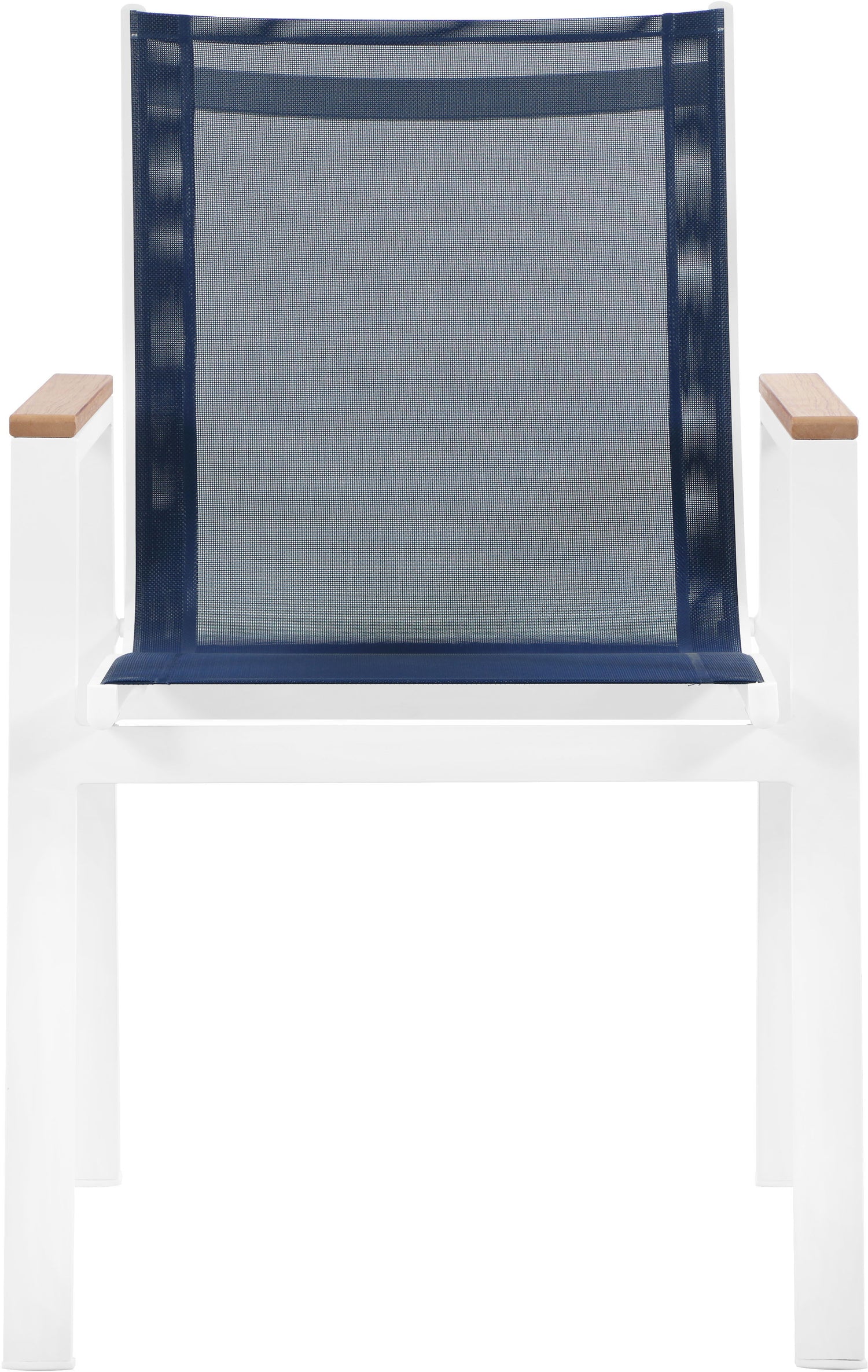 Nizuc - Outdoor Patio Dining Arm Chair With White Frame And Natural Arms (Set of 2) - Navy
