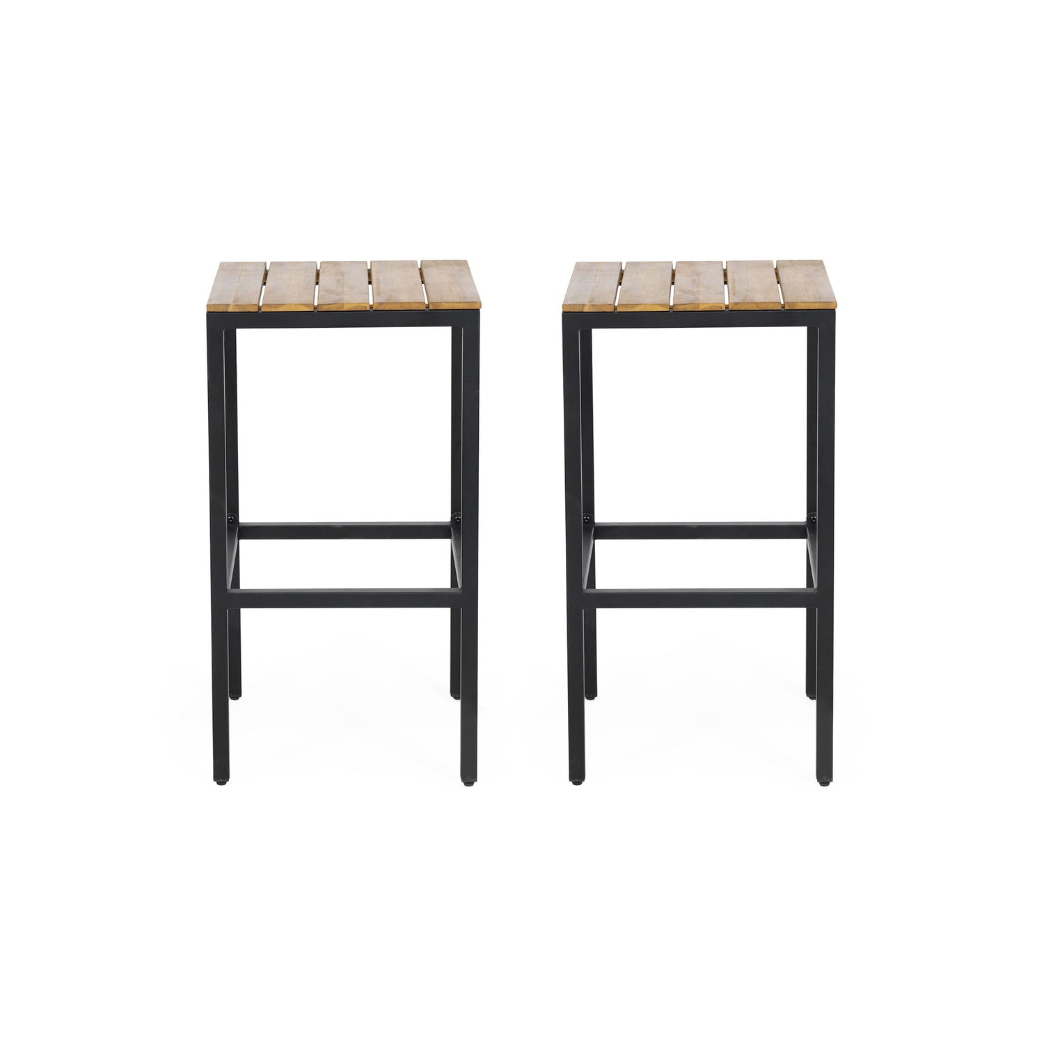 Outdoor Bar Stool With Slat Design And Metal Frame (Set of 2) - Teak / Black