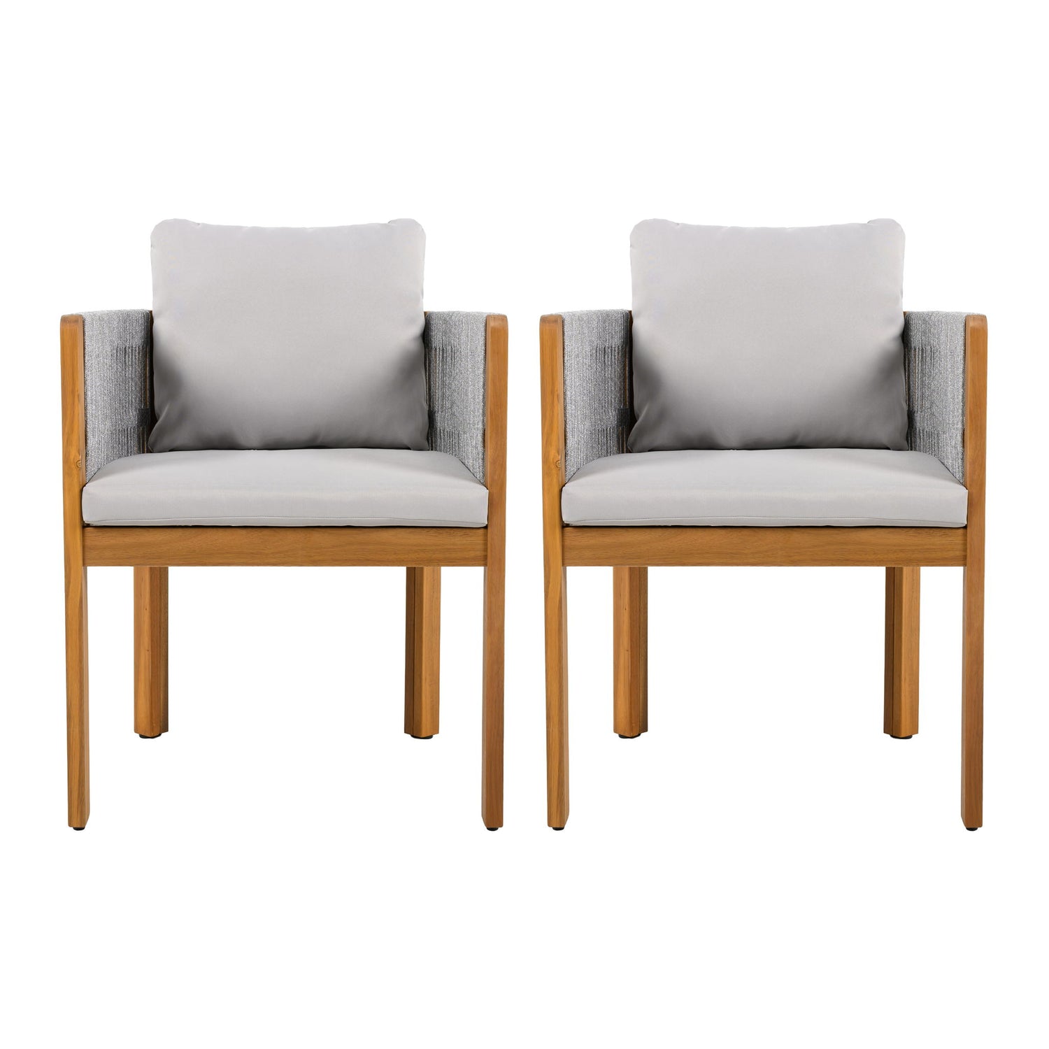 Outdoor Dining Chairs With Rope Handles (Set of 2) - Gray / Teak