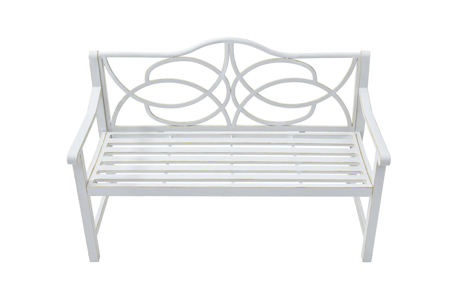 Outdoor Garden Patio Bench With Backrest And Armrest, Slatted Seat For Park, Yard & Porch, Balcony, Accommodates 2 - 3 People - White is backordered and will ship as soon as it is back in stock.