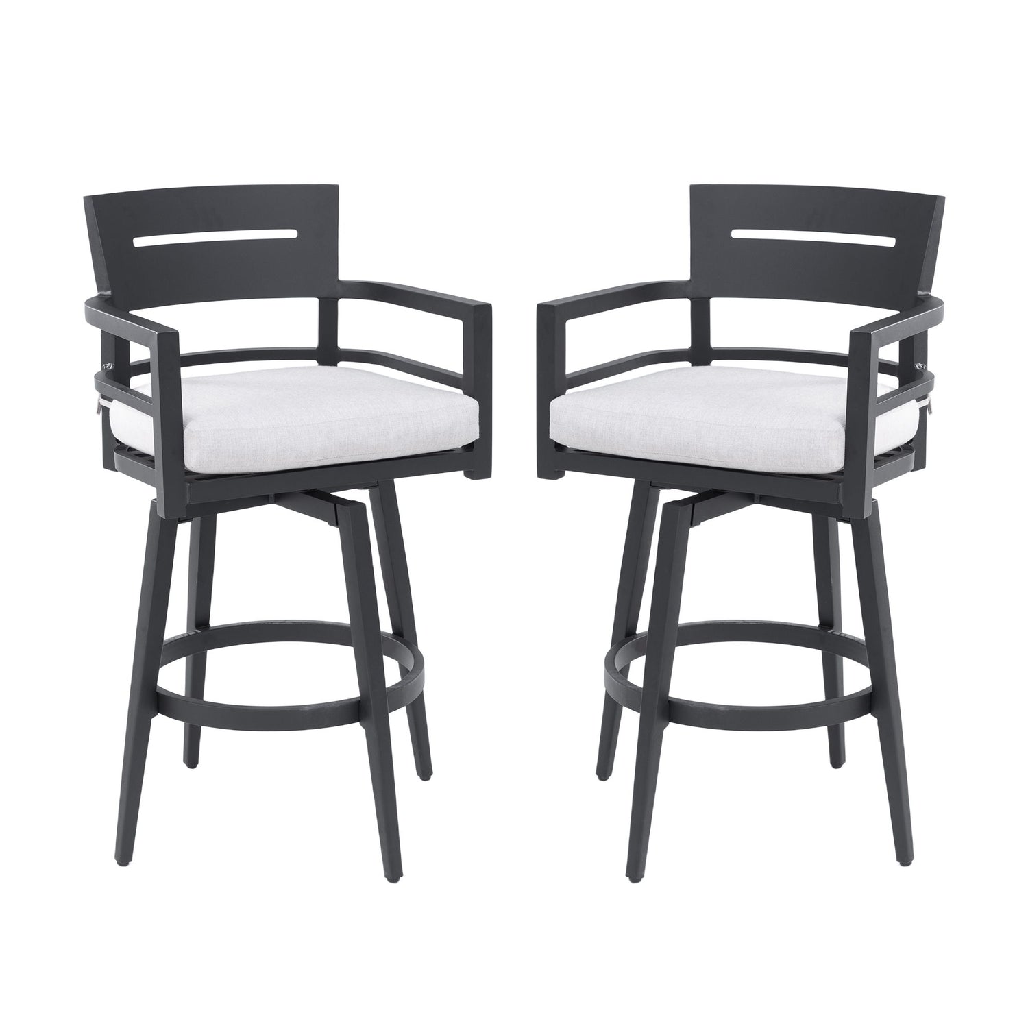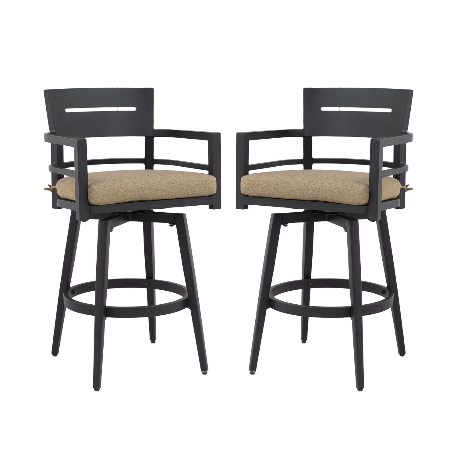 Modern Outdoor Swivel Bar Chairs, 360 Degree Rotation, Ergonomic Backrest, Armrests & Sunbrella Cushions, Weather Resistant (Set of 2) - Ember Black