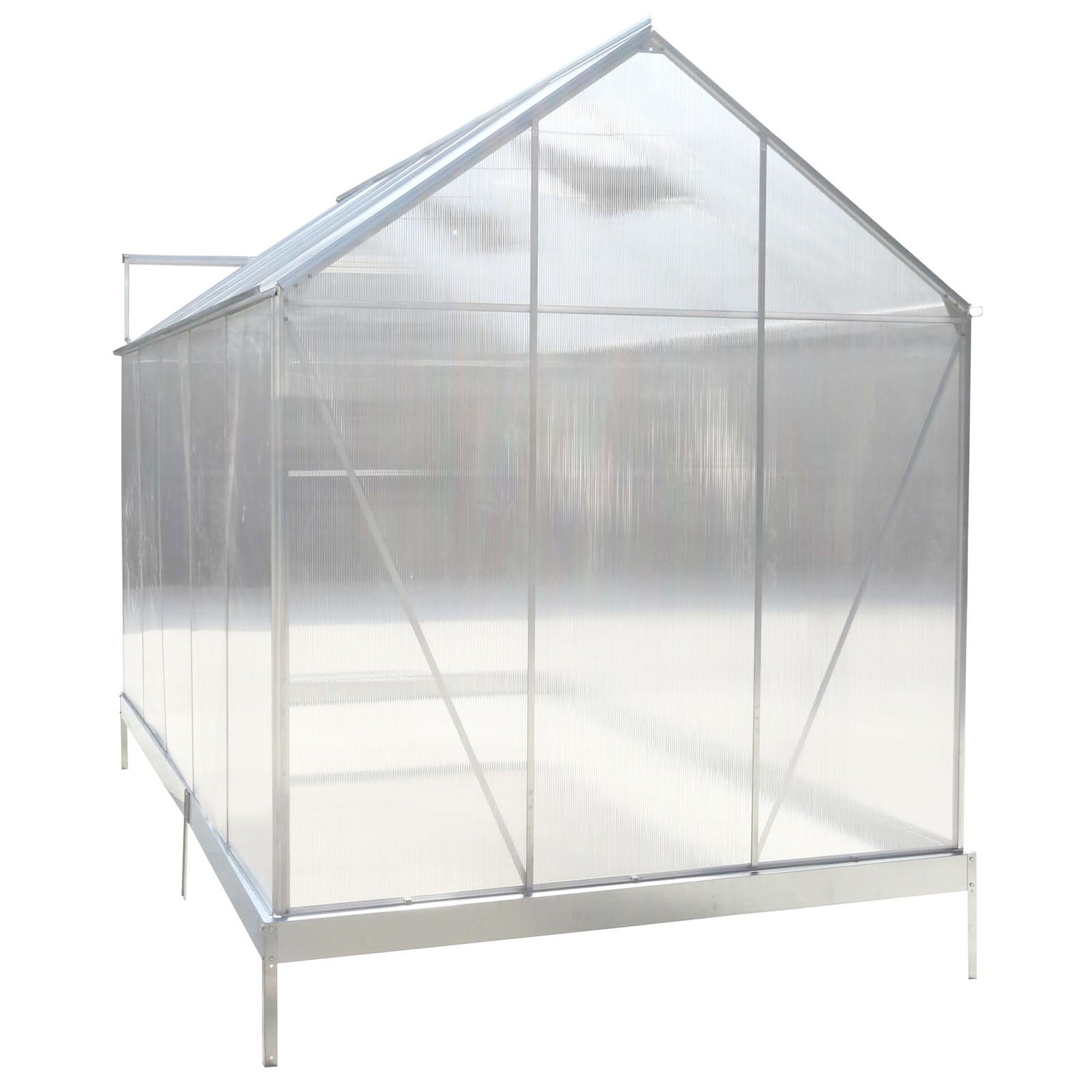 Polycarbonate Greenhouse, Heavy Duty Outdoor Aluminum Walk-In Green House Kit With Rain Gutter, Vent And Door For Backyard Garden - Aluminium