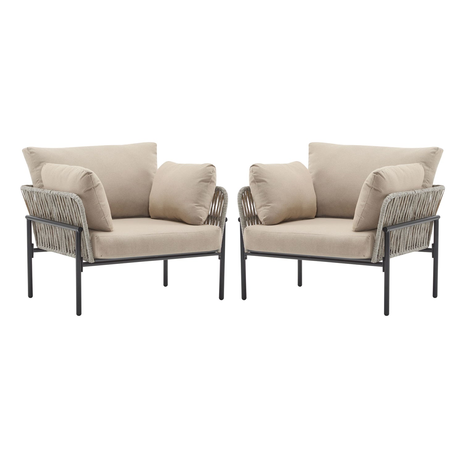 Modern Iron Lounge Chair Set With Rope Weave And Plush Cushions For Indoor Outdoor Relaxation - Beige / Gray