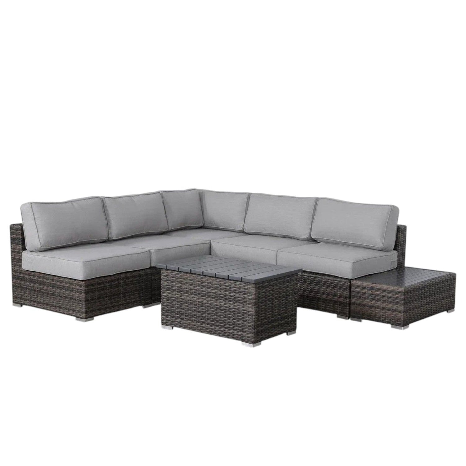 6 Seater Patio Wicker Sofa Set With Coffee Table - Gray Mix