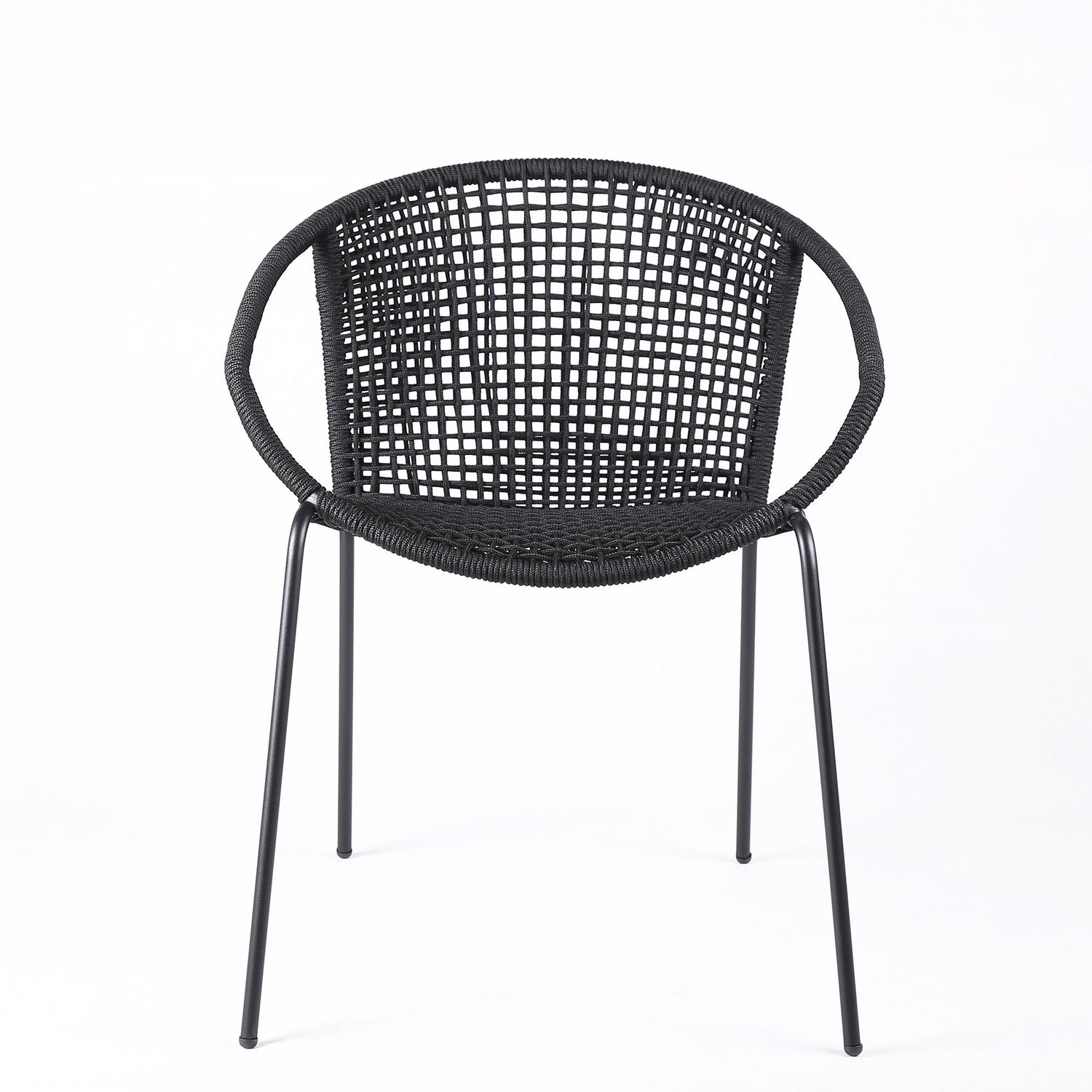 The Snack Indoor Outdoor Steel Dining Chair - Set of 2 from Armen Living is a wonderfully intricate and fun design that will bring a unique aesthetic to your outdoor living space. Featuring an elaborate woven design and durable metal frame, this chair will blend seamlessly into your outdoor decor. The wide seat and back offer ample room for seating - creating an absolutely divine seating experience. This outdoor chair features a weather-resistant regatta cording tightly crosshatches the entire seat and back, providing supportive comfort so you enjoy time around the table with loved ones - also enhancing your seating experience with a softness that rivals most fabrics. Each chair is made with the best craftsmanship, with these chairs standing on top of durable metal legs in a black finish for a modern look. The Snack outdoor chair is available in your color choice of black, brick red, grey, or wasabi - choose your favorite to match your outdoor decor. The Snack Chairs are sold in a pair and are stackable.