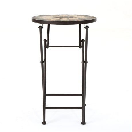 Outdoor End Table, Round Side Table For Patio And Garden - Antique Gray