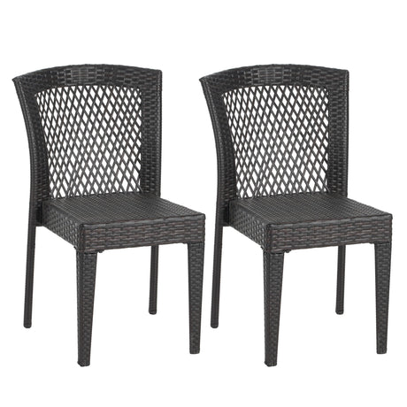 Outdoor Dining Chairs, Stackable Chairs With UV Resistant Frame (Set of 2) - Brown Multi