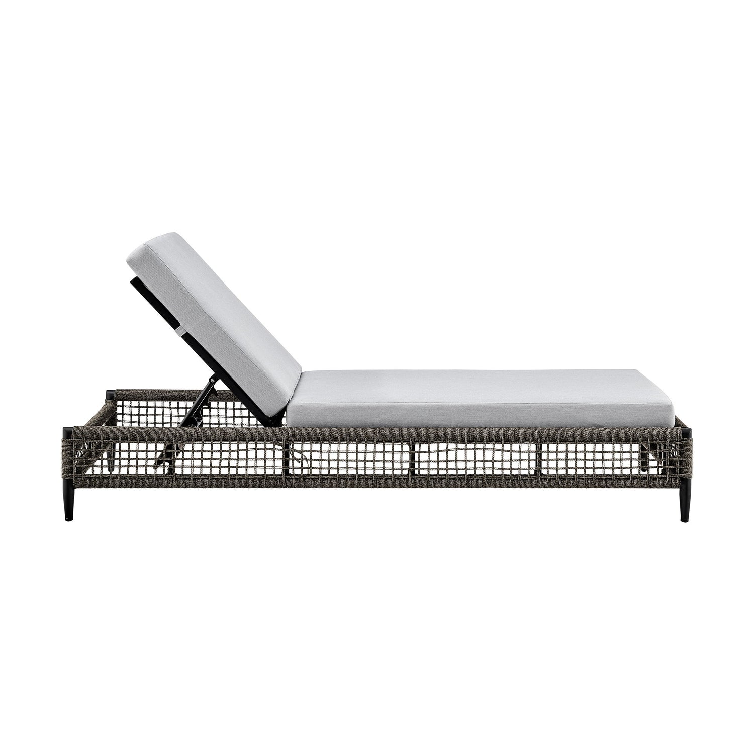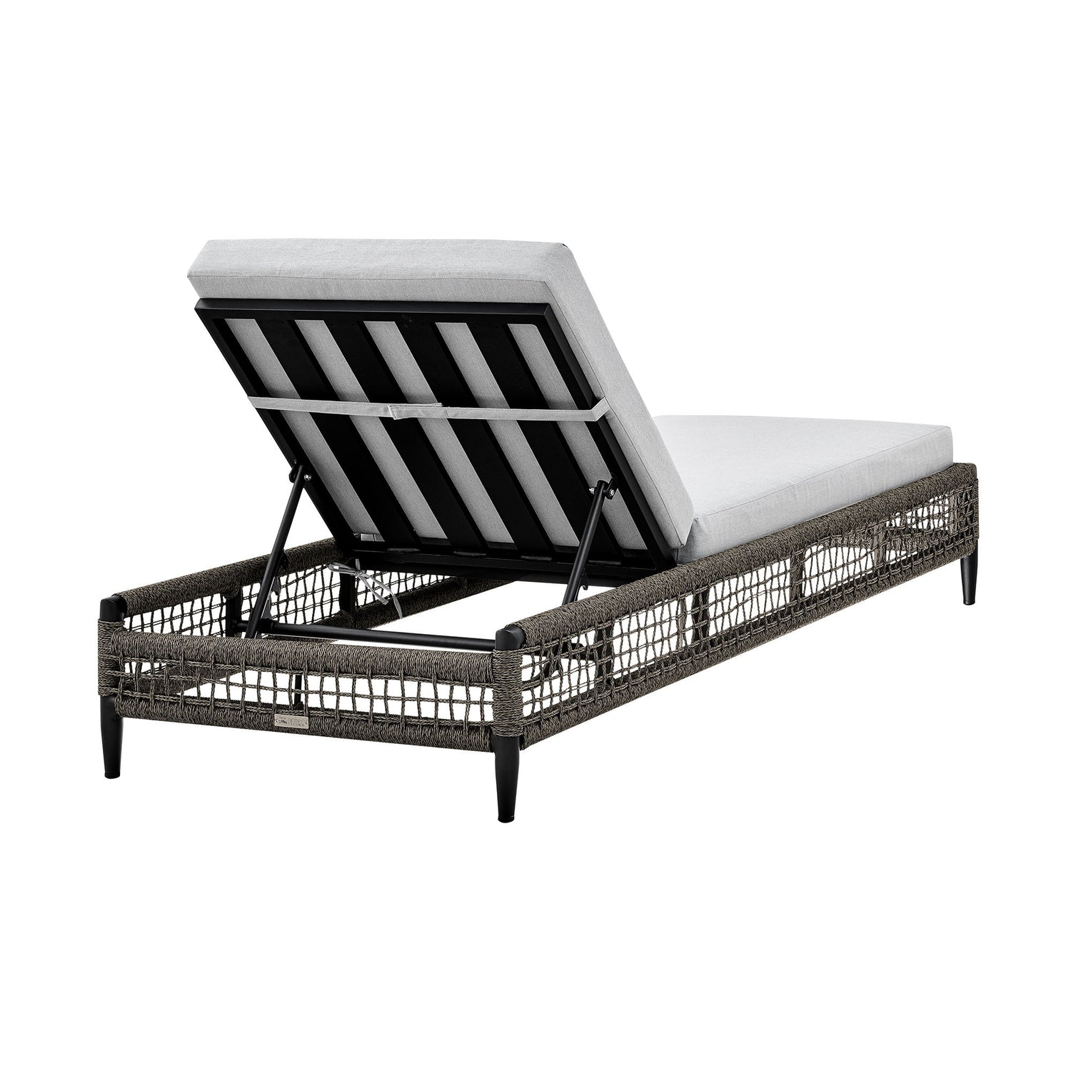 Step up the lounging factor of any outdoor space with the Alegria Outdoor Chaise Lounge Chair from Armen Living. Sleek and elegant, this chaise can serve as a comfy and inviting addition to your backyard patio. The rope that’s wrapped around the base of the chaise is treated to be protected from water, UV, oil, and fading. The lightweight aluminum frame features a multi-layer powder coating for further effective protection from the elements and everyday wear and tear, making this an ideal outdoor furniture piece. The light gray cushions not only feature high-density foam that will allow for many hours of comfortable seating; the cushions also feature a zipper closure that allows for easy removal and cleaning! This piece of outdoor patio furniture can vouch for a chic and modern appeal to compliment any space whether it’s next to your pool, on a rooftop patio, or in your backyard near your garden. The chaise features 5 different reclining positions for ultimate convenience and a generously cushioned seat for a comfortable stay. The aluminum frame is lightweight and makes this chaise outdoor chair with cushions easily portable so that you’re able to follow the sun or shade for an enjoyable outdoor experience. The Alegria Chaise Lounge Chair is a perfect piece of outdoor furniture, it supports up to 330lbs and has a seat height of 15 inches.