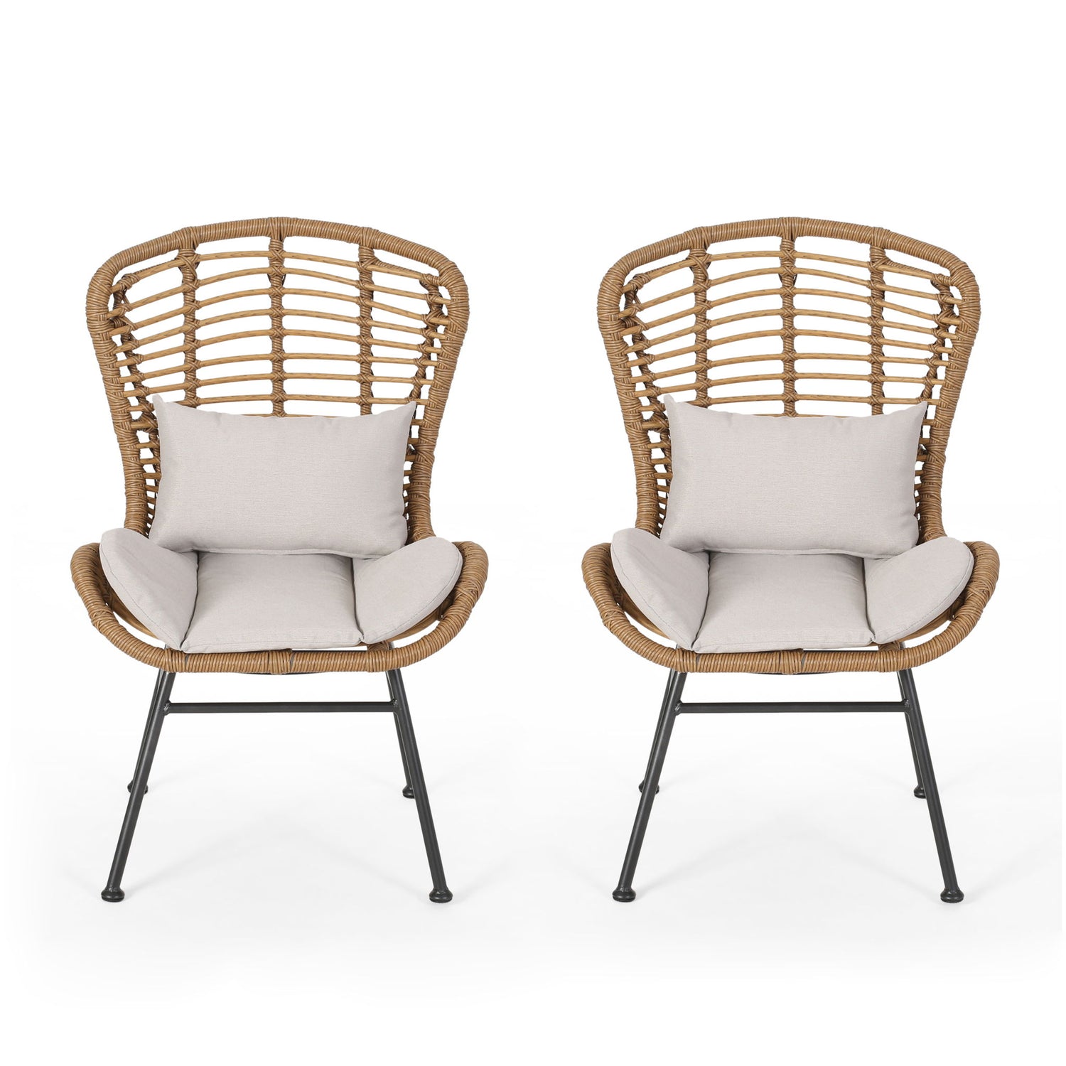 - MODERN: Featuring clean lines and rounded edges, our rattan chair brings modern elegance to your outdoor space. With thin angled legs, it combines sleek, minimalistic design with stability for the perfect contemporary touch.