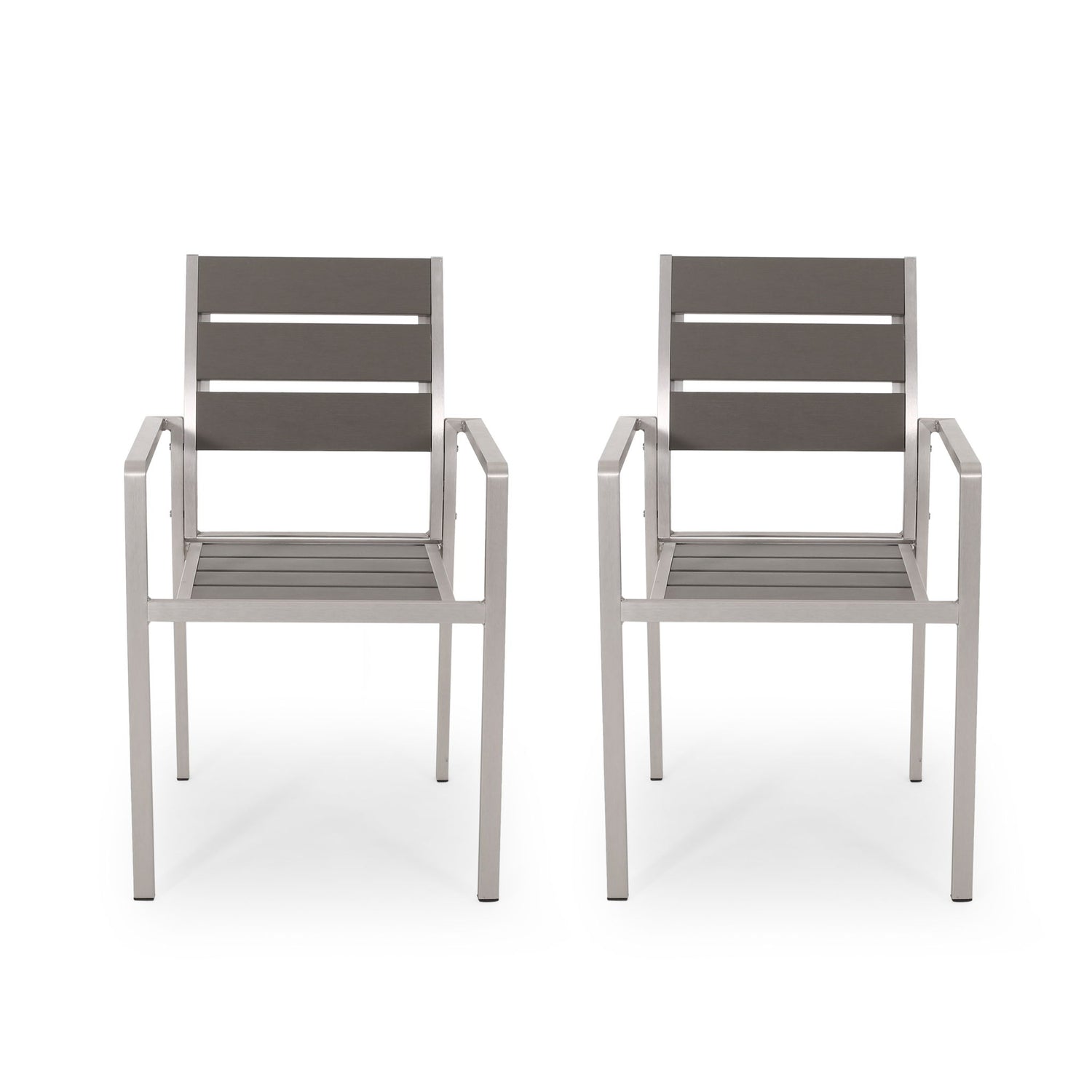 Dreamlan - Outdoor Aluminum Dining Chair With Faux Wood Seat (Set of 2) - Gray / Silver