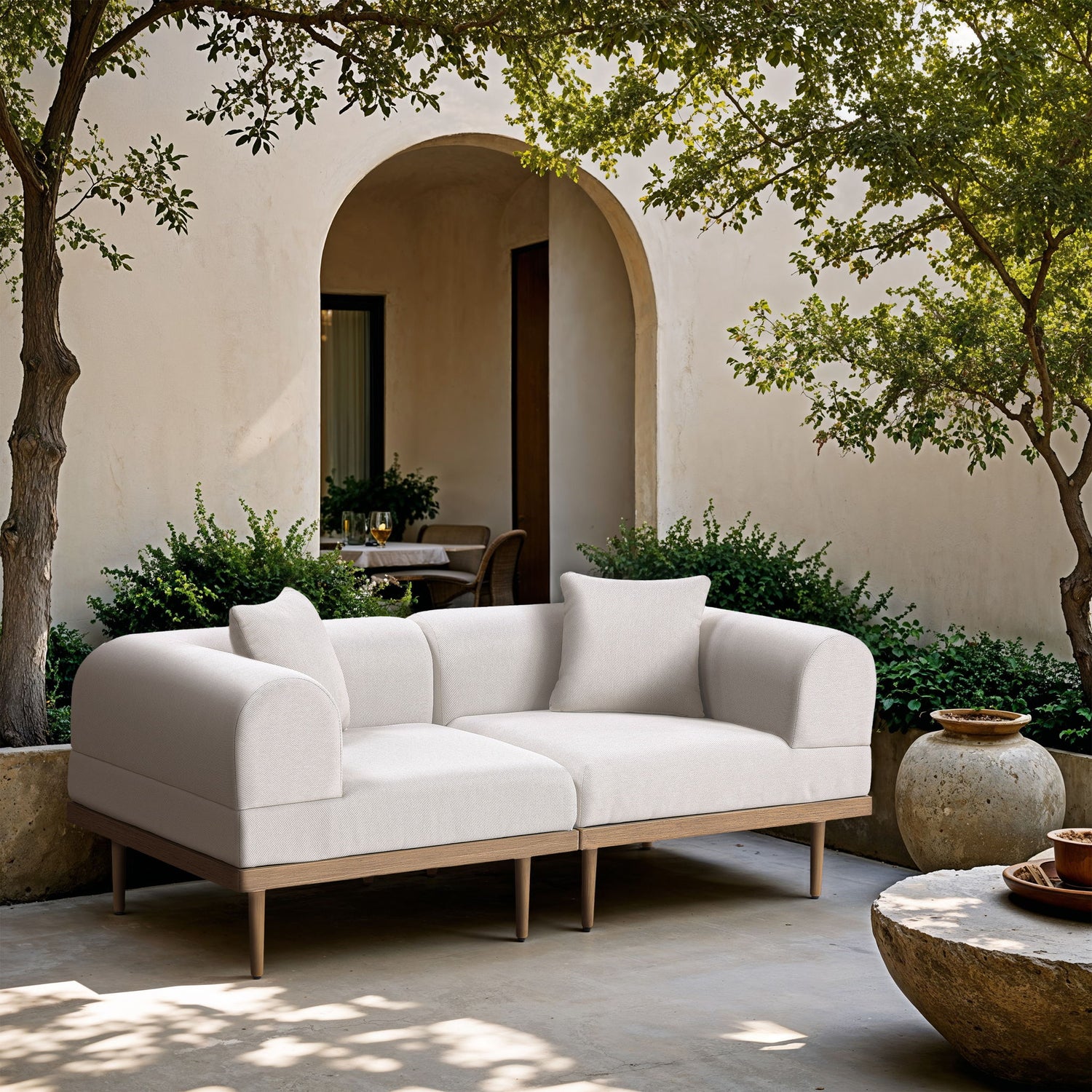 Laguna - 2 Piece Resilient Water Resistant Fabric 71" Upholstered Outdoor Patio Modular Loveseat - Cream