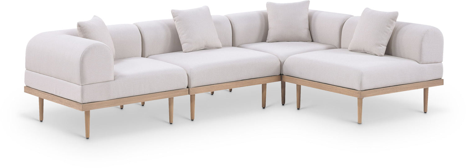 Laguna - 4 Piece Resilient Water Resistant Fabric 106.5" Outdoor Patio Modular Sectional - Cream