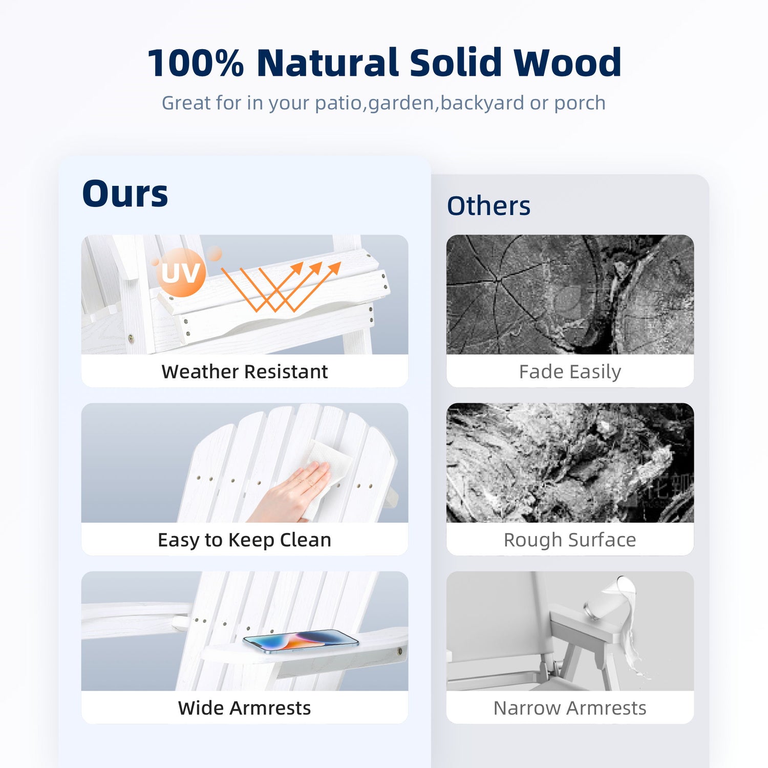 - Traditional Charm: Adirondack design in Hemlock wood.