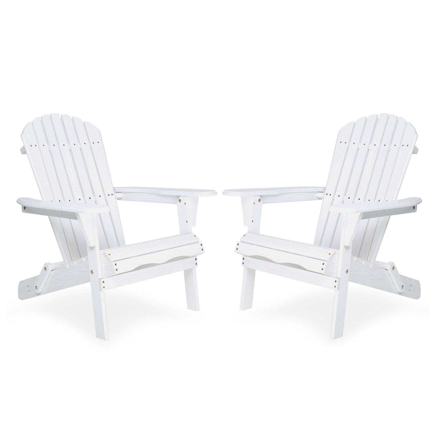 Solid Cedar Wood Lounge Patio Chair (Set of 2) With Embossed Grain Design Folding Adirondack Chair For Outdoor Garden - White