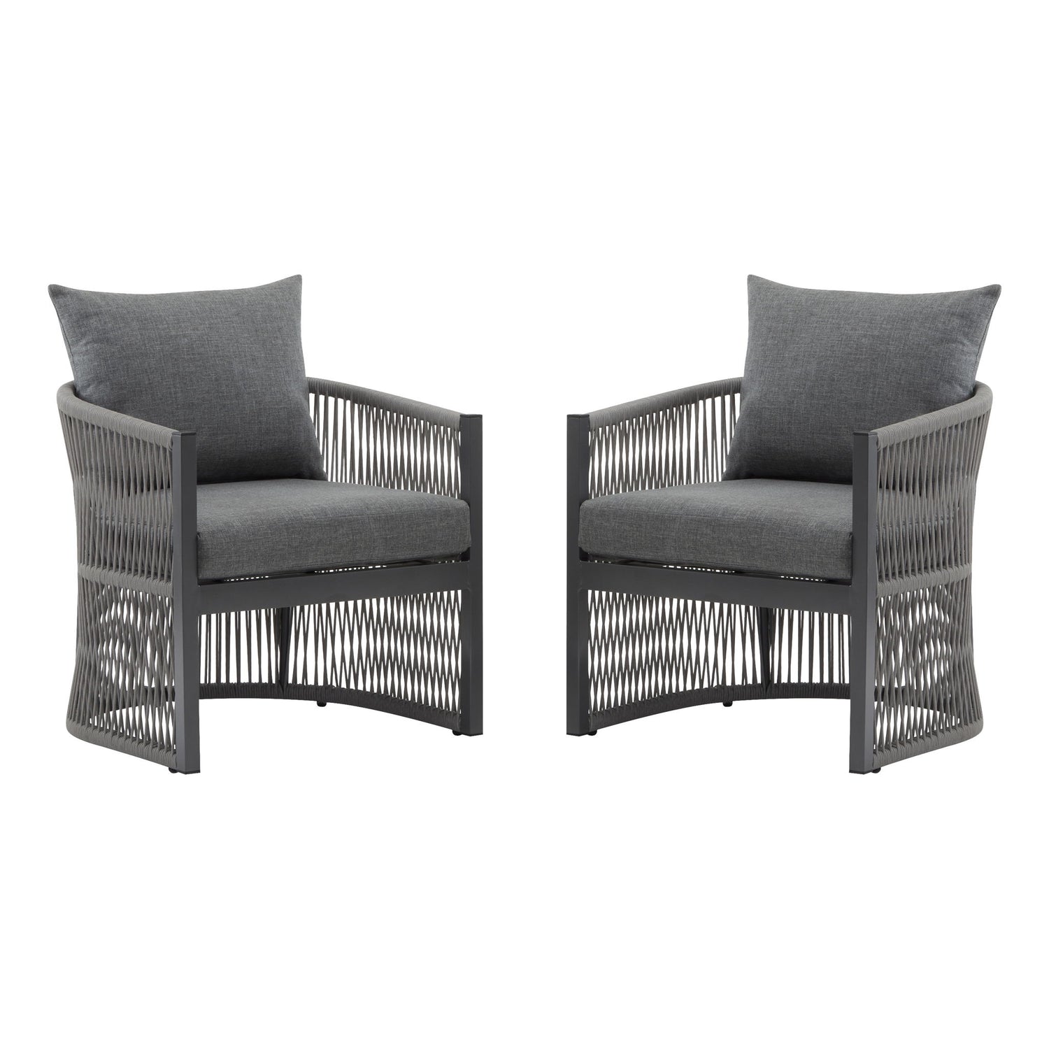 Modern Curved Aluminum Lounge Chair With Rope Weave Design And Cushioned Comfort (Set of 2) - Gray