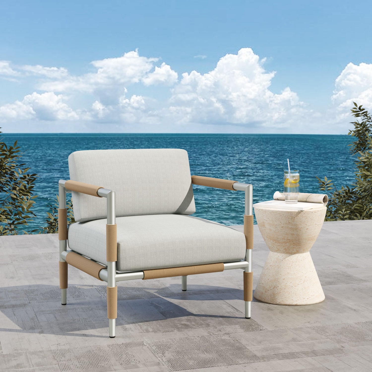 Oriana - Aluminum Outdoor Patio Armchair With Thick Cushions - Light Gray