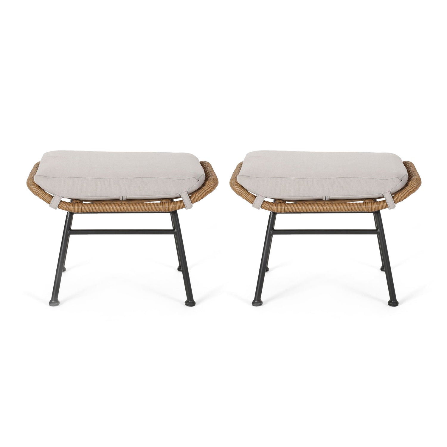 Outdoor Modern Boho Wicker Ottoman With Cushions (Set of 2)
