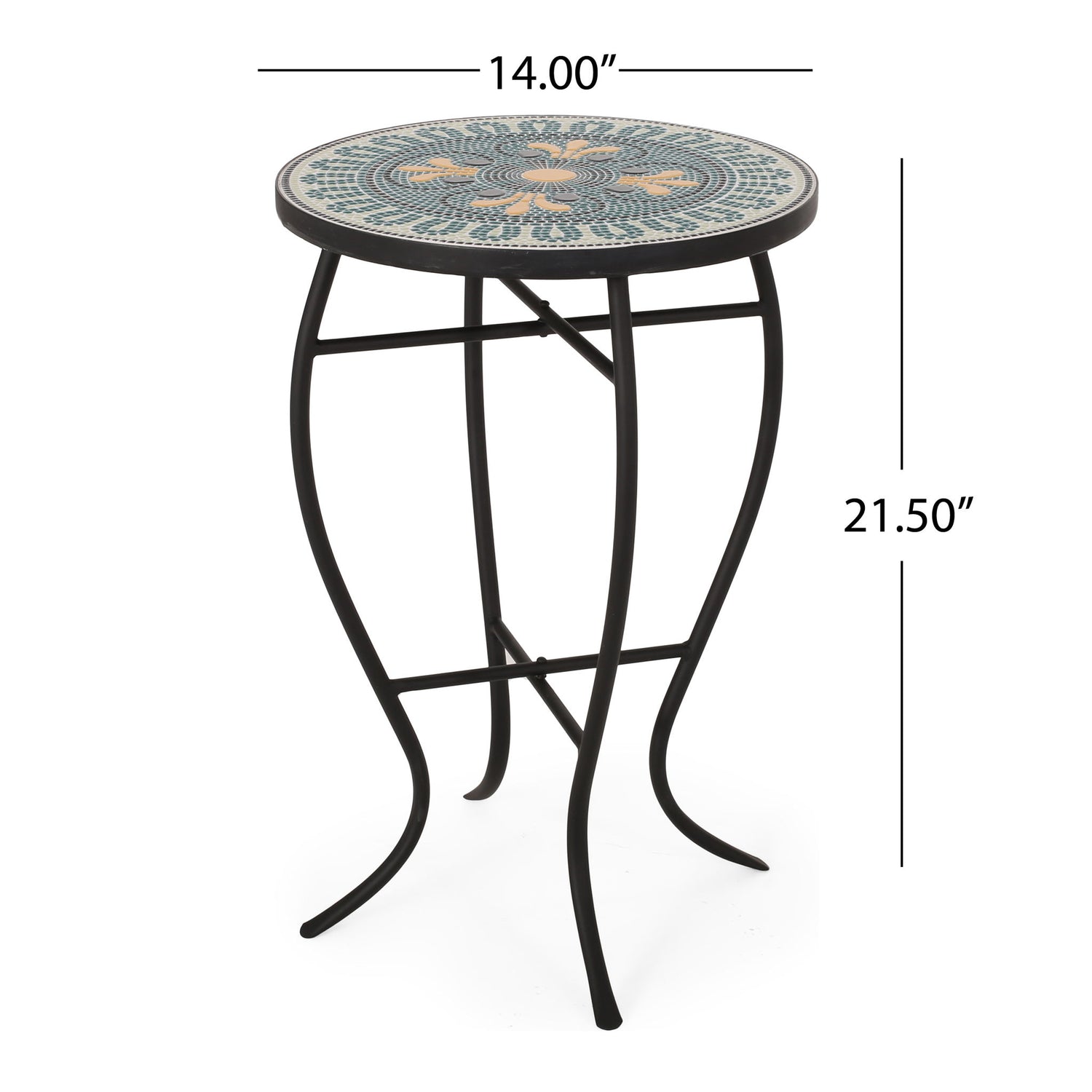 Outdoor Side Table With Tile Mosaic Table Top - Black