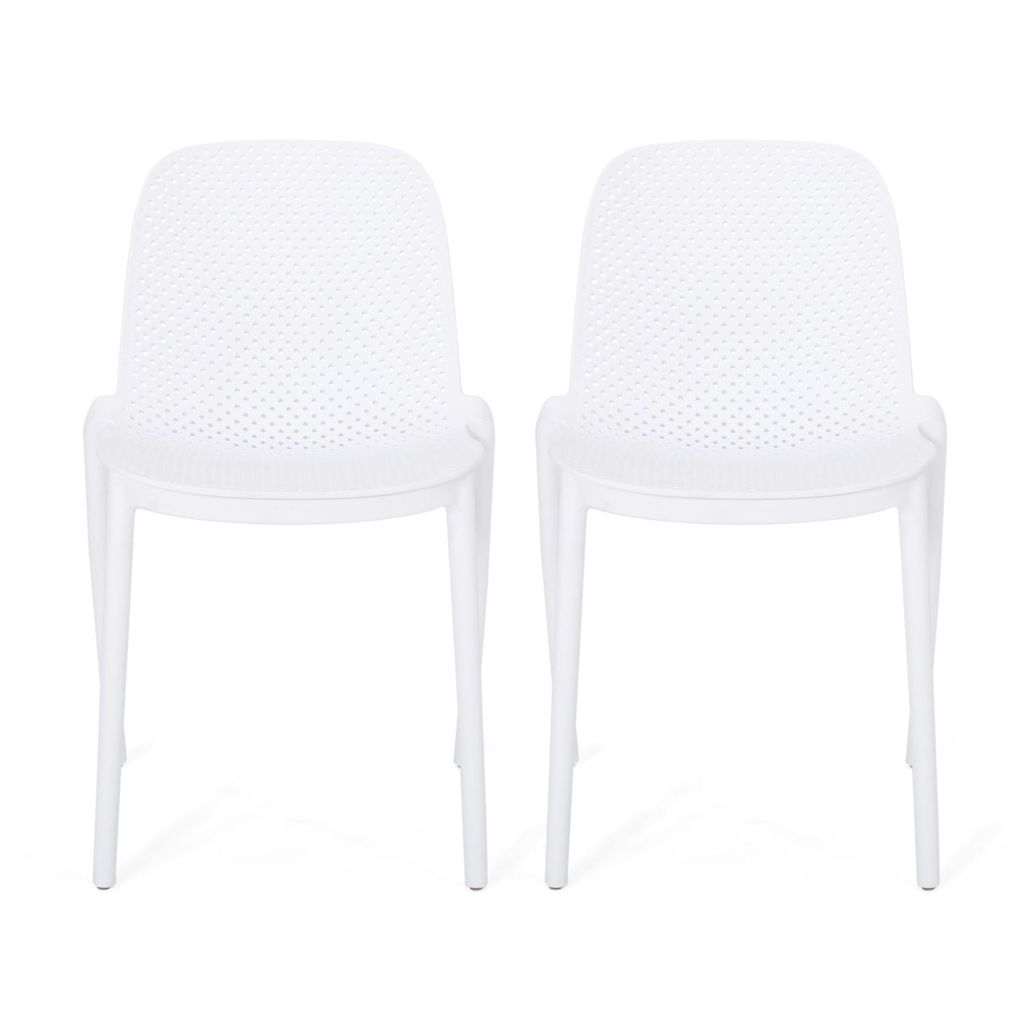 Outdoor Stacking Dining Side Chair (Set of 2) - White