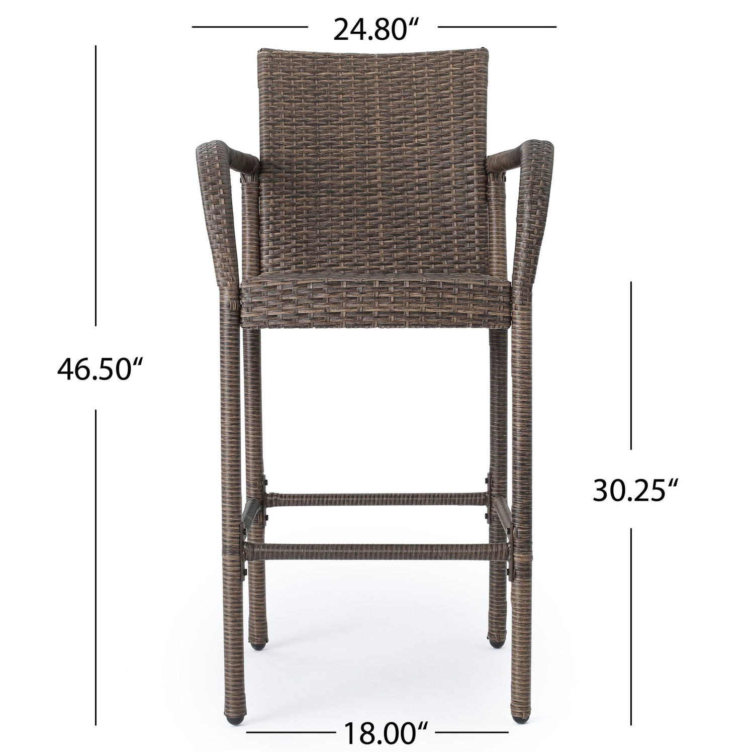 Outdoor Wicker Barstool With Faux Rattan And Iron Frame - Mix Mocha