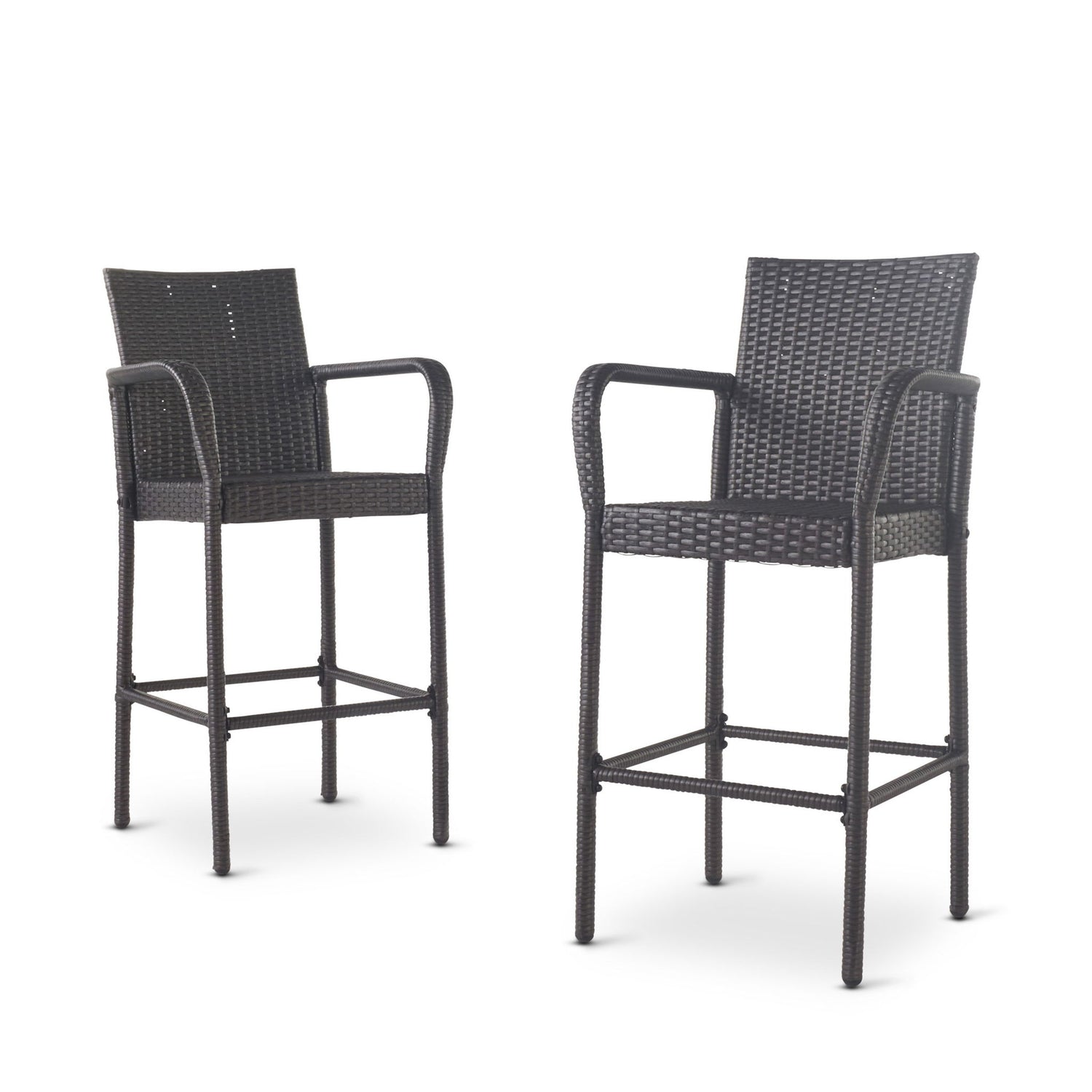 Outdoor Wicker Barstools Faux Rattan Iron Frame (Set of 2) - Gray