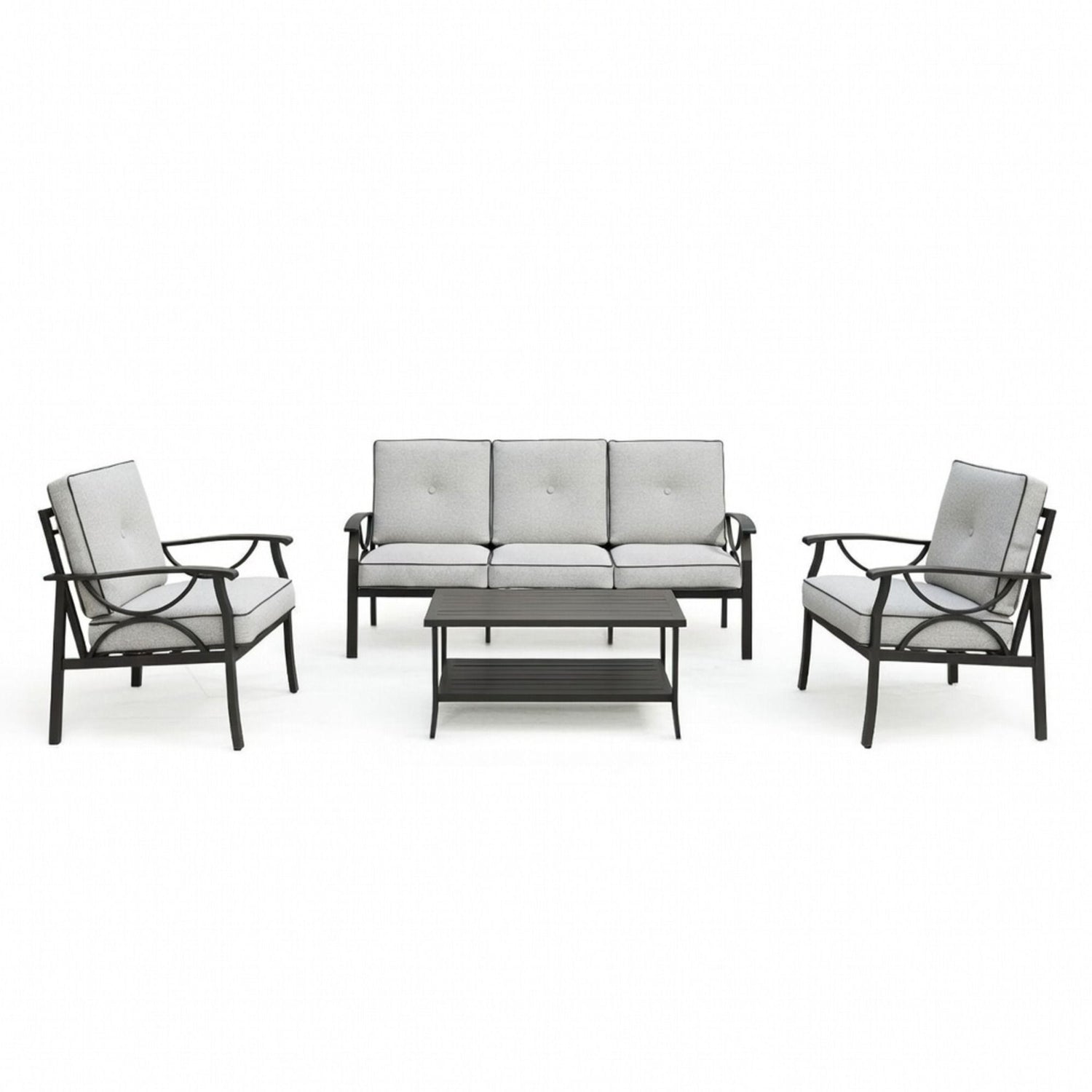 4 Piece Patio Furniture Set With Thick Cushions Frame, Coffee Table For Backyard - Gray / Black