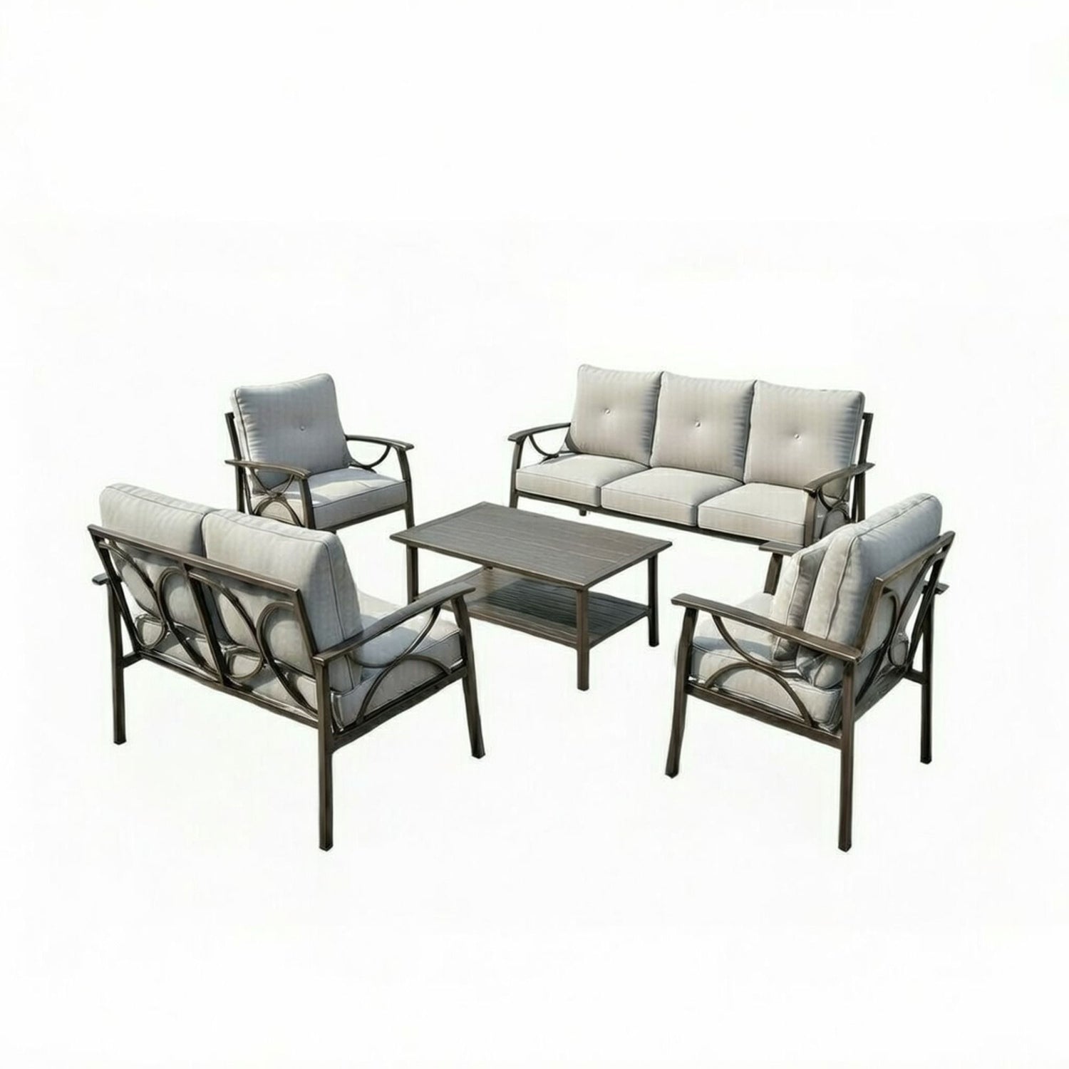 5 Piece Patio Furniture Set With Thick Cushions, Coffee Table For Backyard - Gray