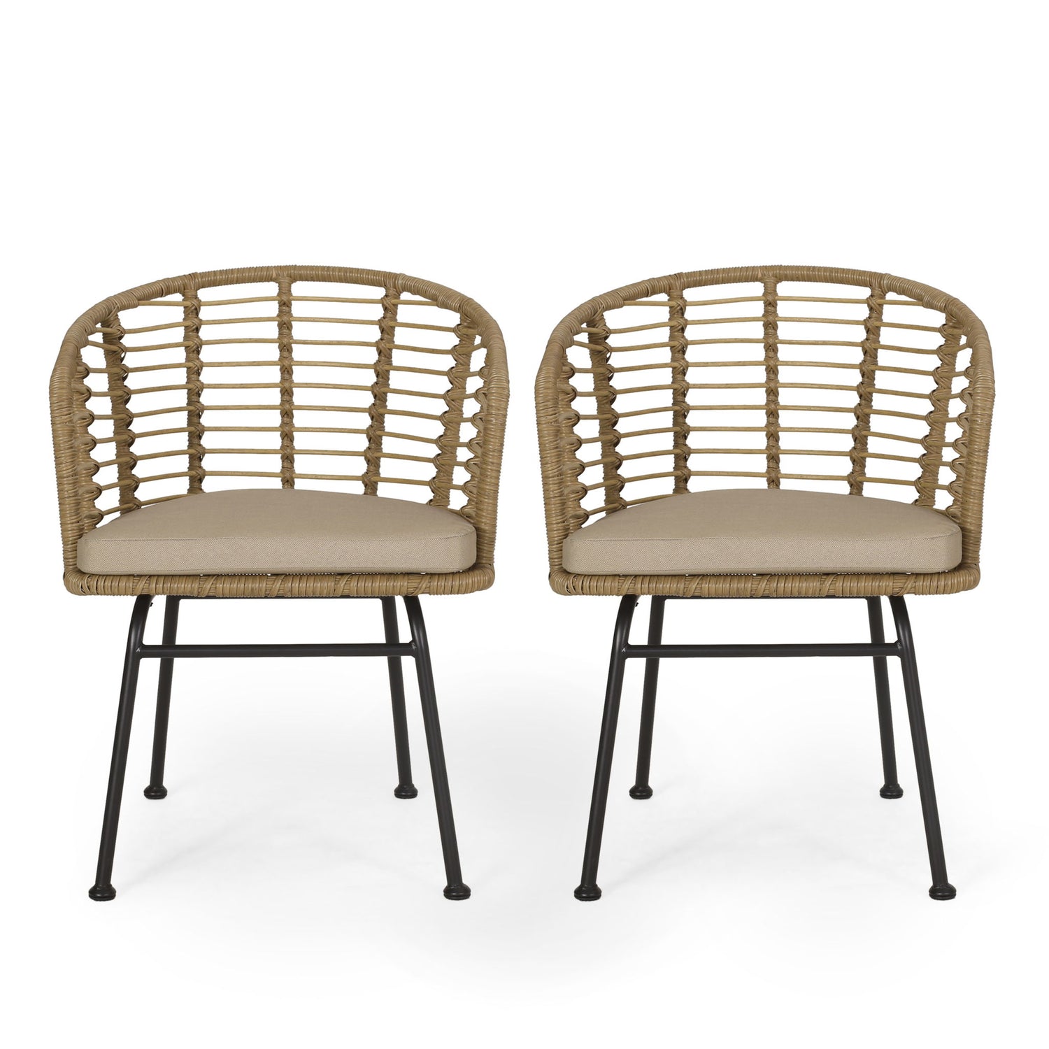 Randy - Modern Wicker Chair With Water Resistant Cushions - Brown / Beige