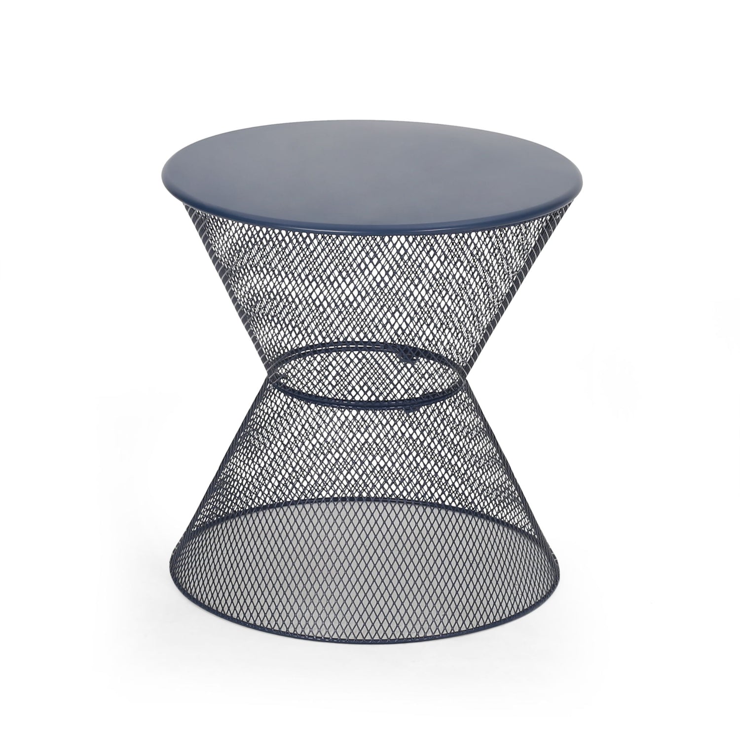 Zine - Outdoor Side Table With Hourglass Shaped And Iron Frame - Navy is backordered and will ship as soon as it is back in stock.