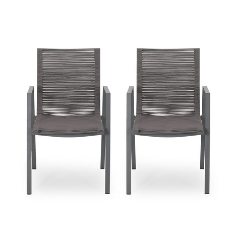 Outdoor Modern Aluminum Dining Chair Set With Rope Sea (Set of 2)