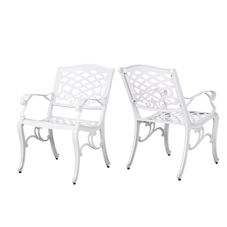 Unravel - Outdoor Arm Chair With Scroll Design And Floral Accents (Set of 2) - White