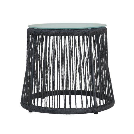 Cayman - Outdoor Round Conversation Table With Wicker Shelf - Black