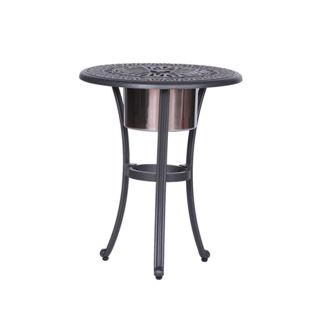 Outdoor Patio Aluminum Round Bistro Table/Side Table With Ice Bucket - Gunmetal