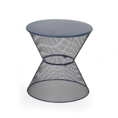 Zine - Outdoor Side Table With Hourglass Shaped And Iron Frame - Navy