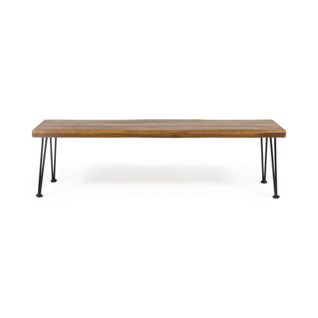 Zion - Industrial Wood And Metal Rectangular Bench With Faux Live Edge Design - Teak