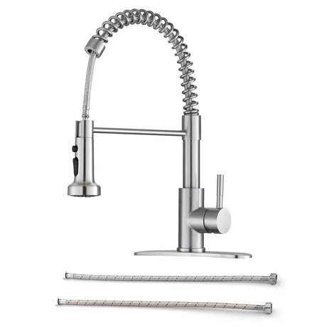 Stainless Steel High Arc Kitchen Faucet With Pull Down Sprayer - Brushed Nickel