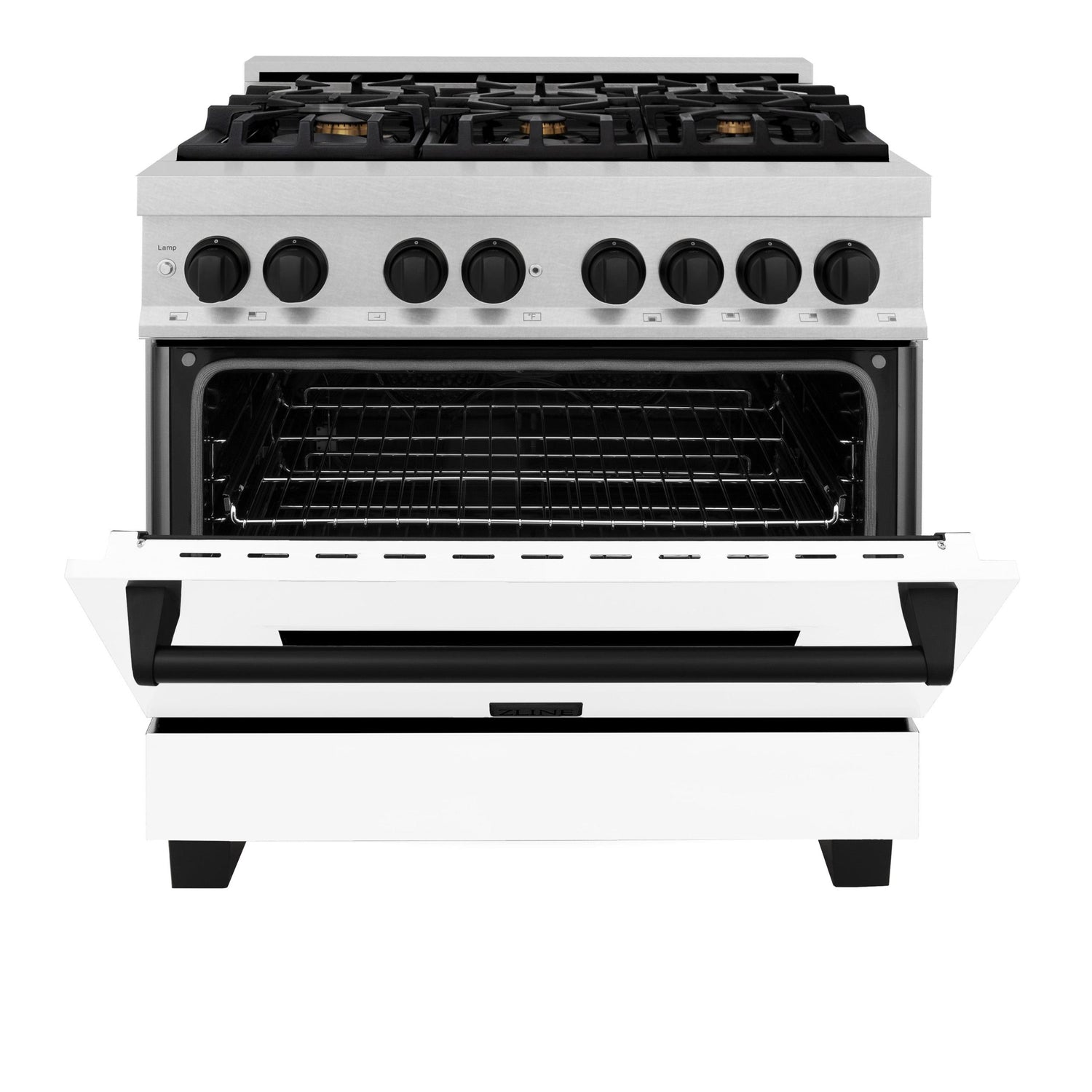 ZLINE Autograph Edition 36" 4.6 cu. ft. Dual Fuel Range with Gas Stove and Electric Oven in DuraSnow Stainless Steel with White Matte Door and Accents (RASZ-WM-36) [Color: Matte Black] - (RASZWM36MB)