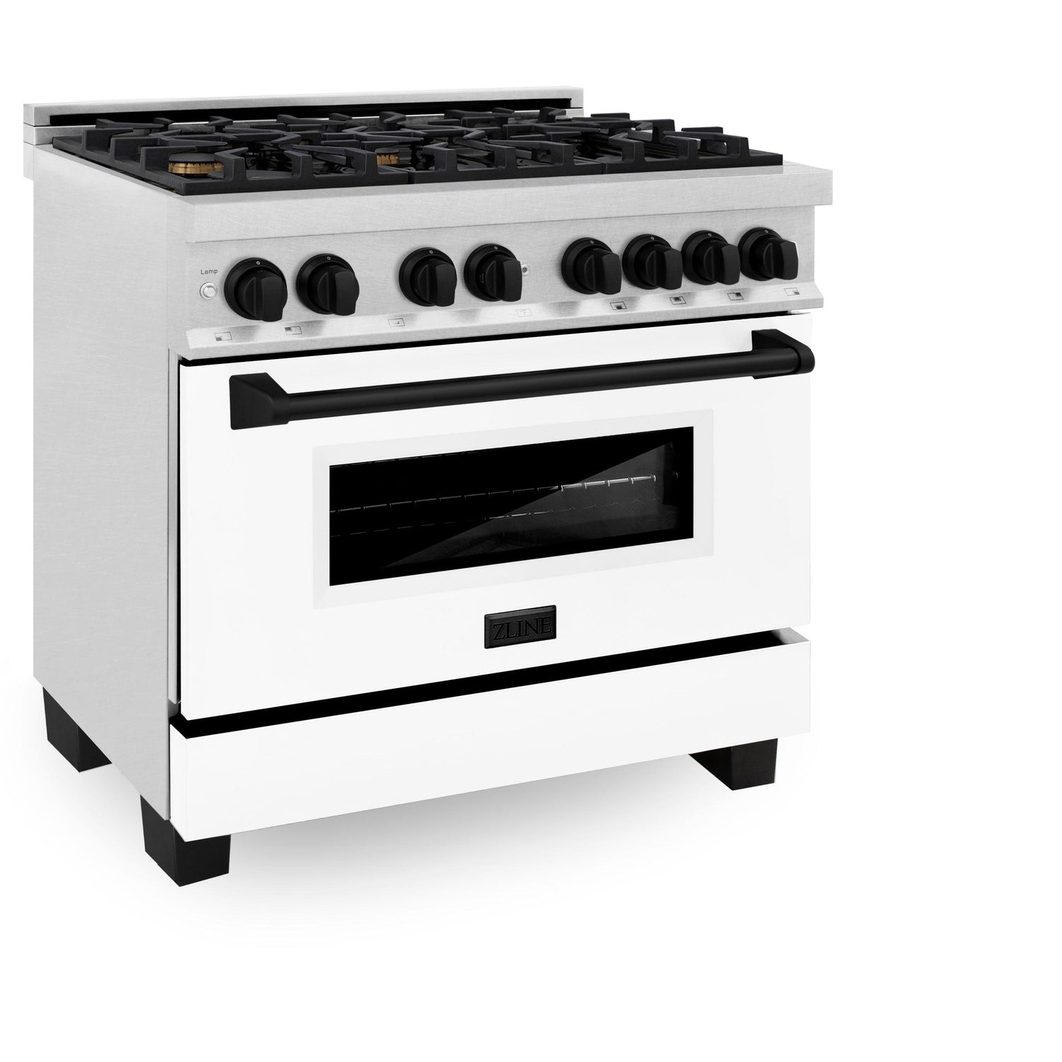 ZLINE Autograph Edition 36" 4.6 cu. ft. Dual Fuel Range with Gas Stove and Electric Oven in DuraSnow Stainless Steel with White Matte Door and Accents (RASZ-WM-36) [Color: Matte Black]