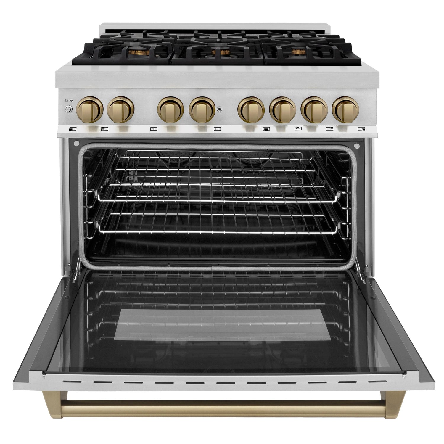 ZLINE Autograph Edition 36" 4.6 cu. ft. Dual Fuel Range with Gas Stove and Electric Oven in Stainless Steel with Accents (RAZ-36) [Color: Champagne Bronze] - (RAZ36CB)