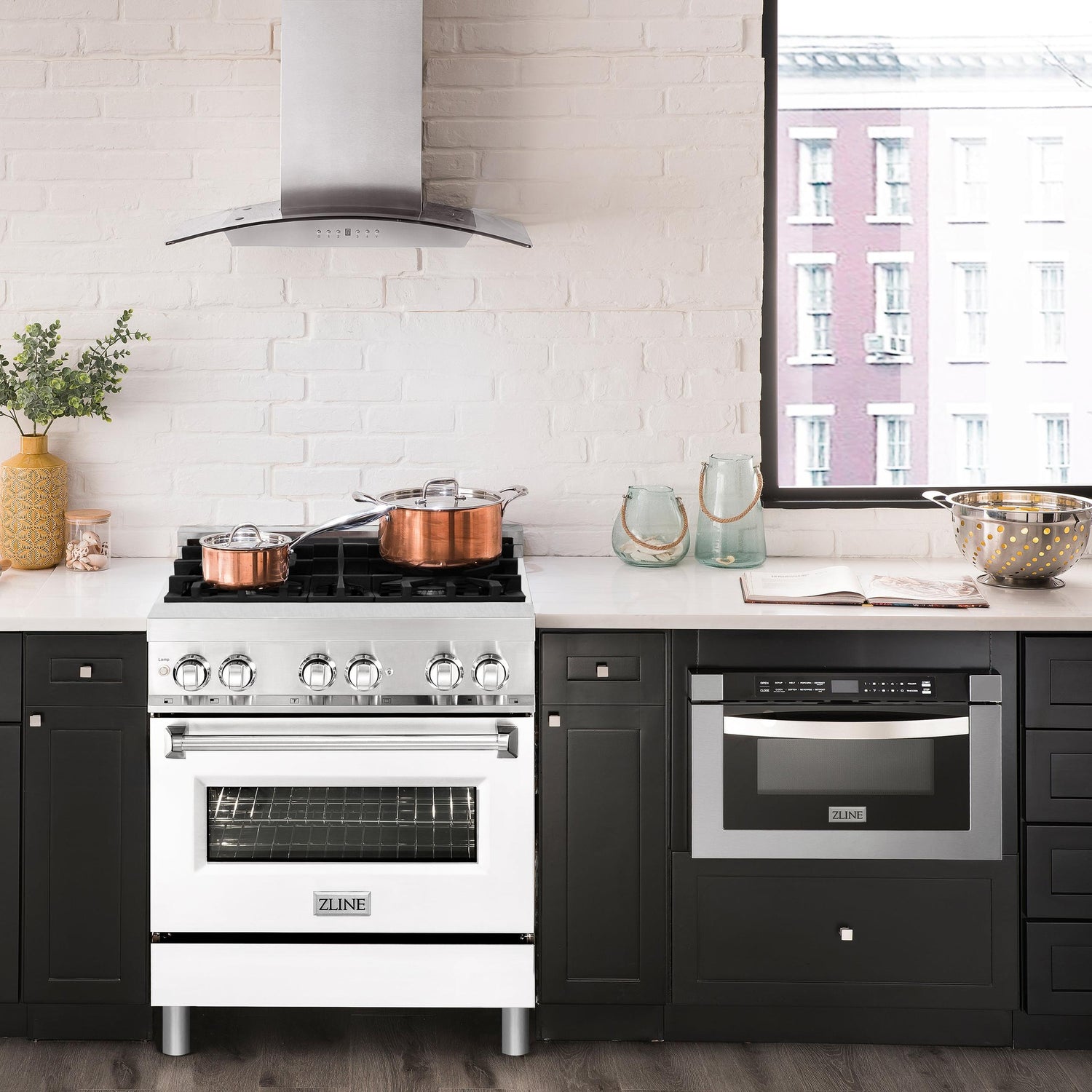 ZLINE 30 in. Dual Fuel Range with Gas Stove and Electric Oven in Stainless Steel (RA30) [Color: White Matte]
