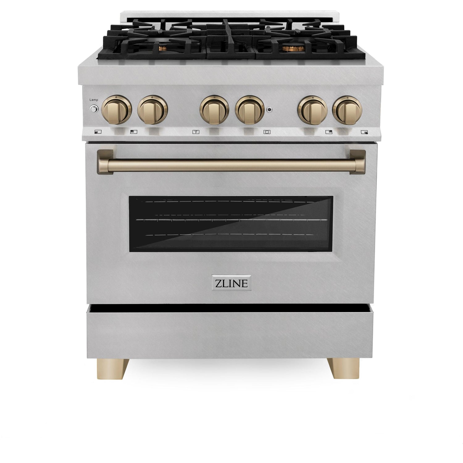 ZLINE Autograph Edition 30" 4.0 cu. ft. Dual Fuel Range with Gas Stove and Electric Oven in DuraSnow Stainless Steel with Accents (RASZ-SN-30) [Color: Champagne Bronze] - (RASZSN30CB)