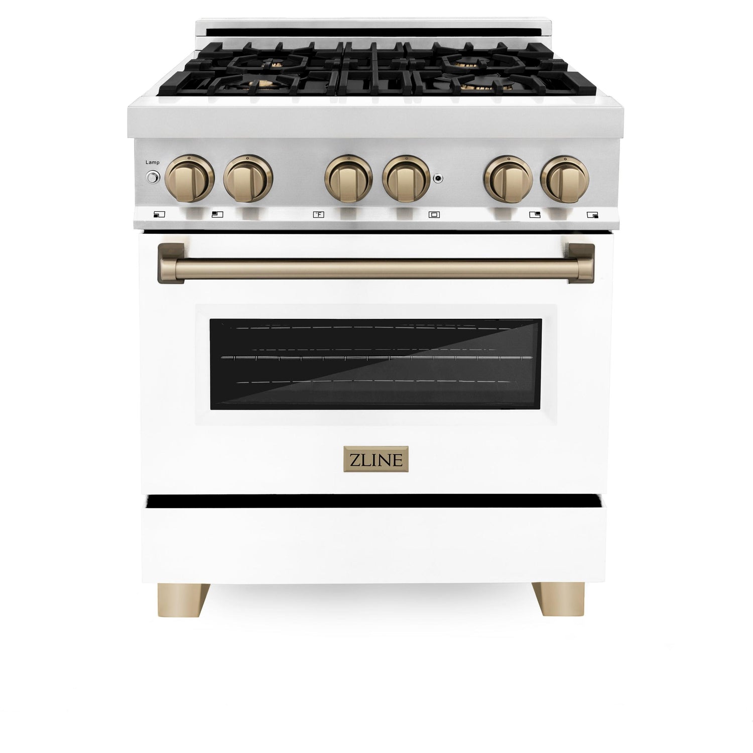 ZLINE Autograph Edition 30 in. 4.0 cu. ft. Dual Fuel Range with Gas Stove and Electric Oven in Stainless Steel with White Matte Door and Accents (RAZ-WM-30) [Color: Champagne Bronze] - (RAZWM30CB)