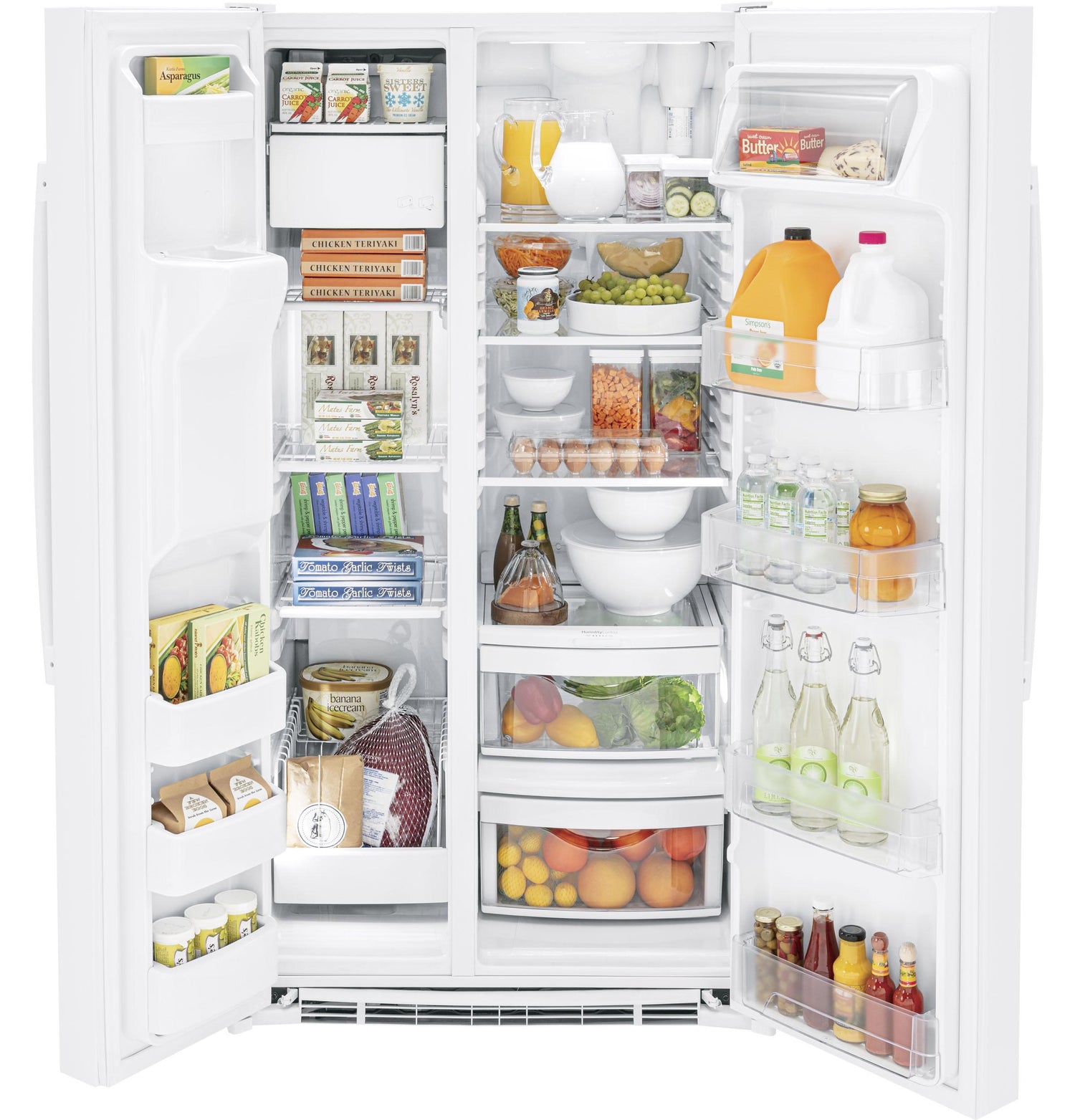 GE GSS25GGPWW - 36 in. 25.3 cu. ft. Side by Side Refrigerator with Ice & Water Dispenser - White