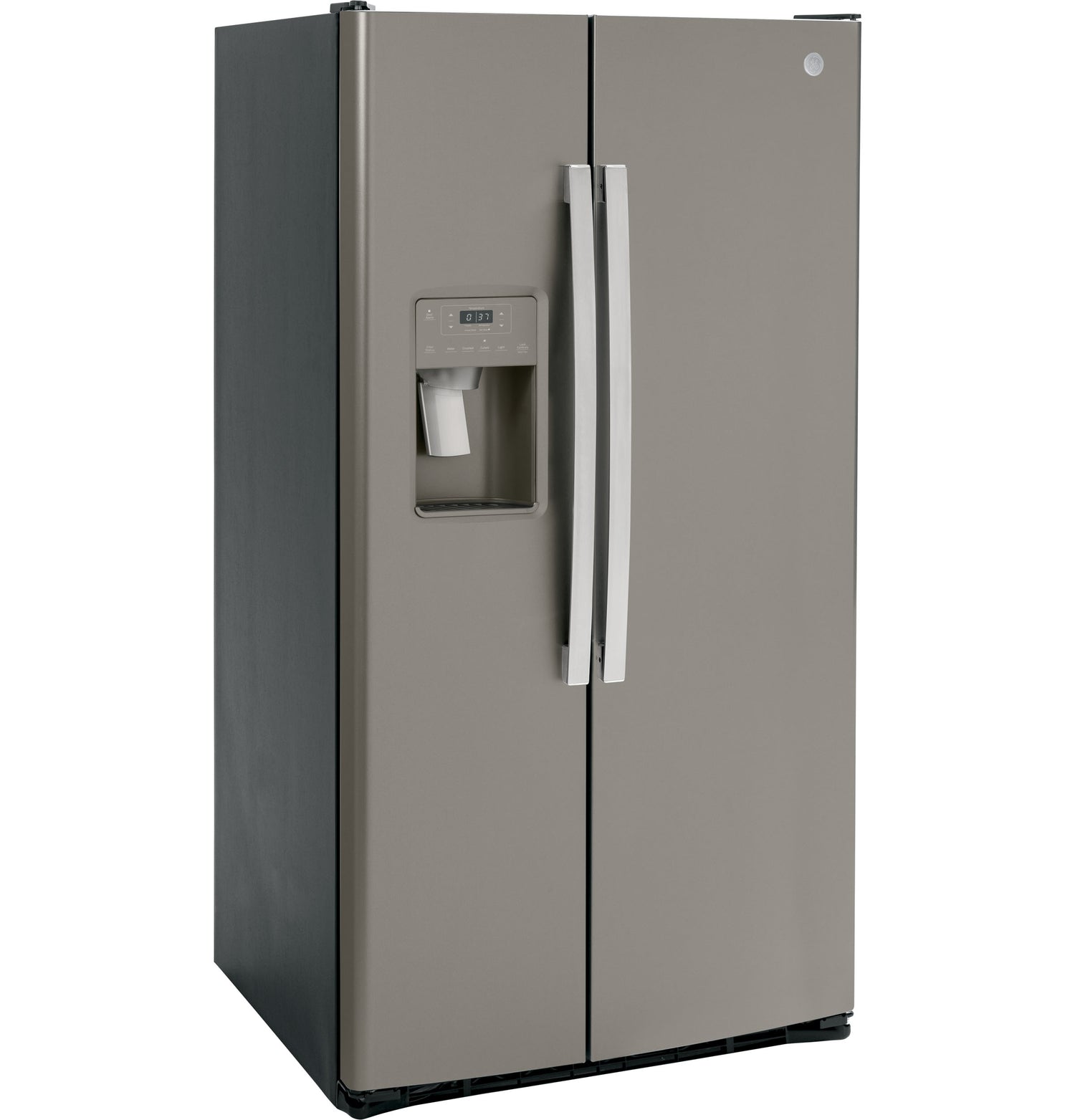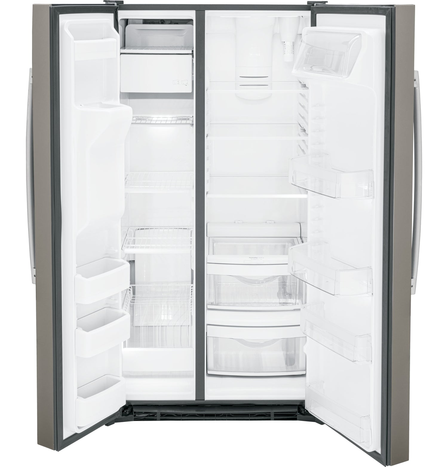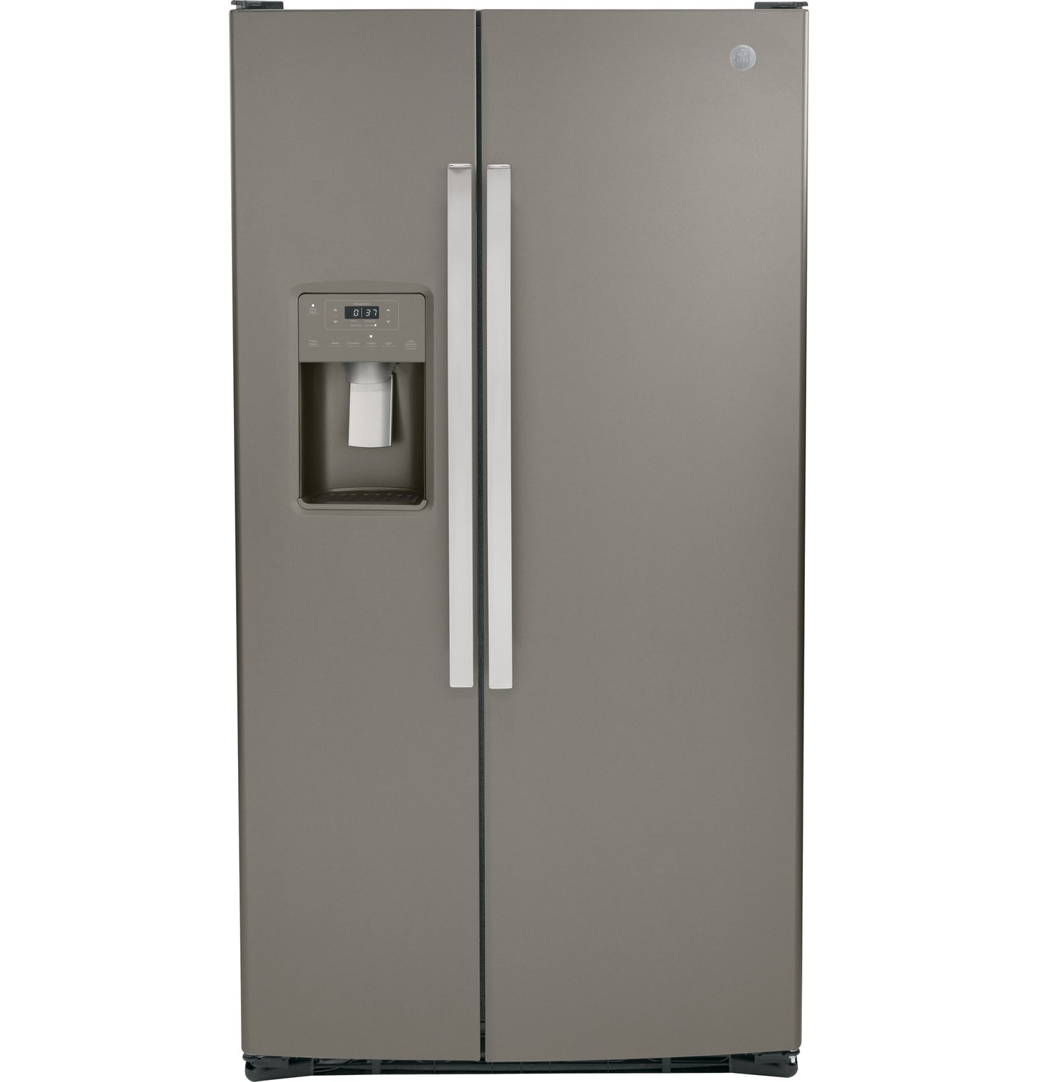 GE GSS25GMPES - 36 in. 25.3 cu. ft. Side by Side Refrigerator with Ice & Water Dispenser, Fingerprint Resistant - Slate